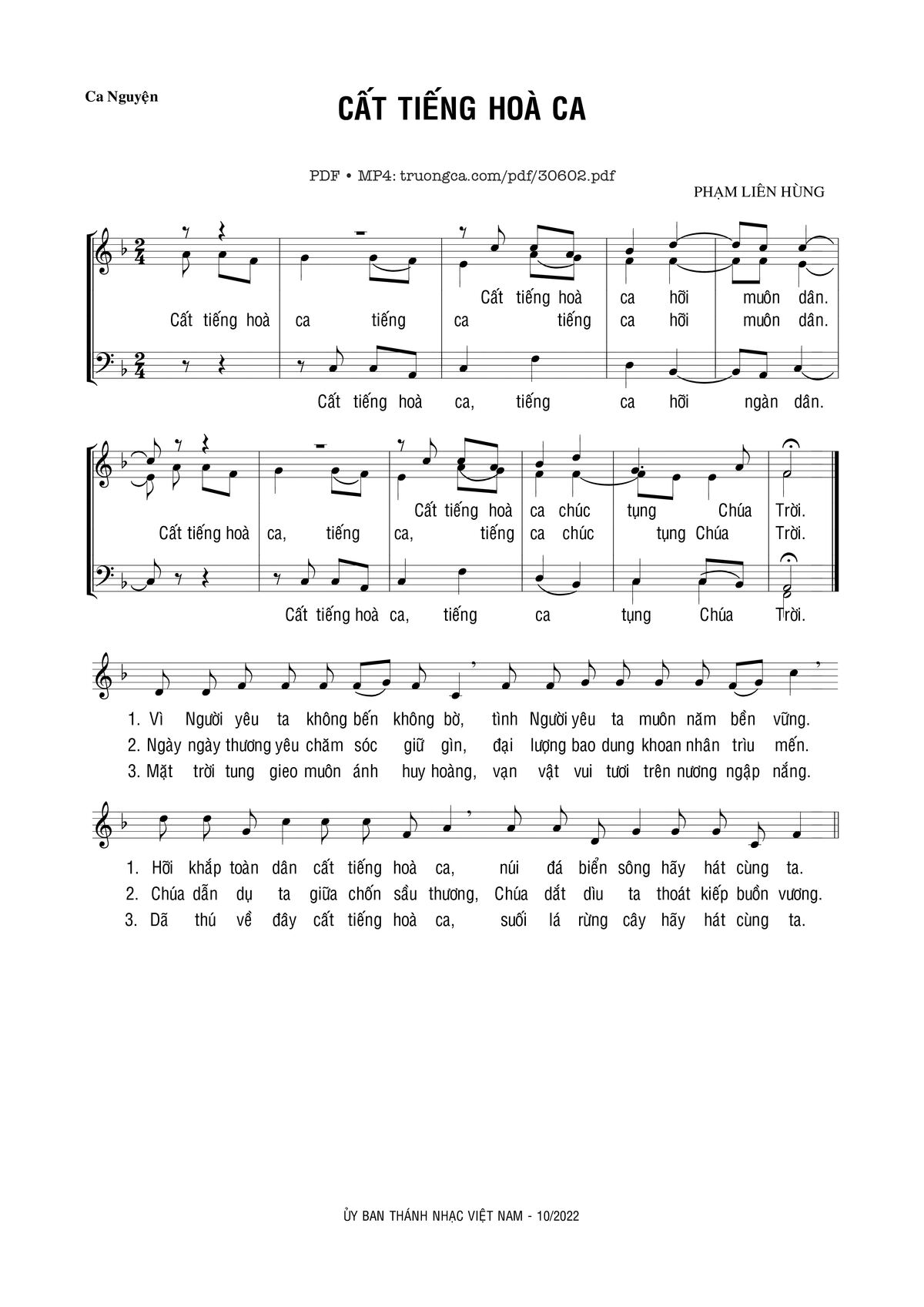 Sheet music Cất tiếng hòa ca by Phạm Liên Hùng and PDF file was posted here to support you to practice singing perfectly. Sheets with notes and chords are for reference only, for non-commercial purposes only, not involved with earning money by buying and selling. Copyright is belong to song writer/author and copyright owner. Truongca.com do not own any copyrighted content. You can download the high-quality PDF files which contain staffs by PDF link above.