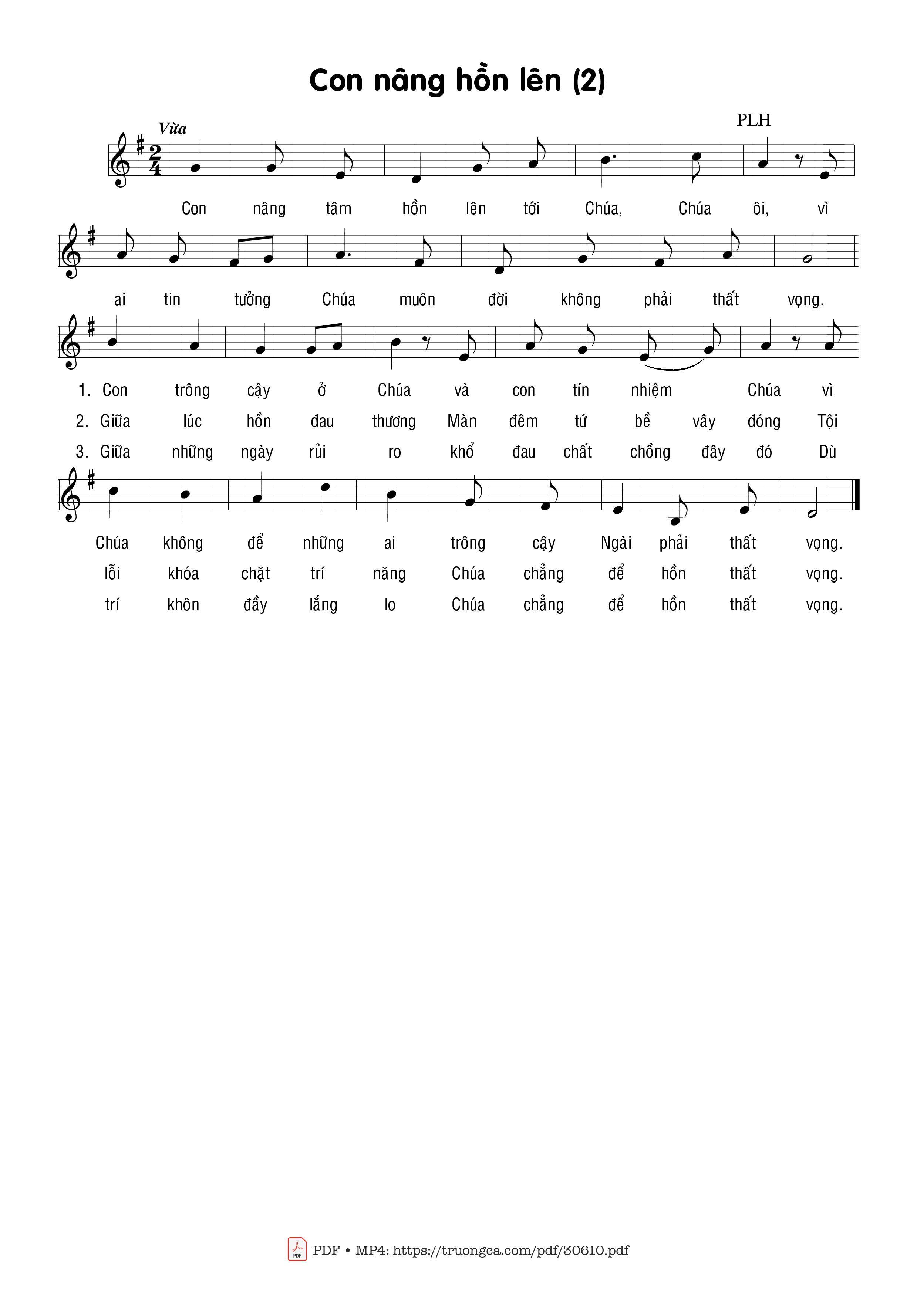 Sheet music Con Nâng Hồn Lên (2) by Phạm Liên Hùng and PDF file was posted here to support you to practice singing perfectly. Sheets with notes and chords are for reference only, for non-commercial purposes only, not involved with earning money by buying and selling. Copyright is belong to song writer/author and copyright owner. Truongca.com do not own any copyrighted content. You can download the high-quality PDF files which contain staffs by PDF link above.