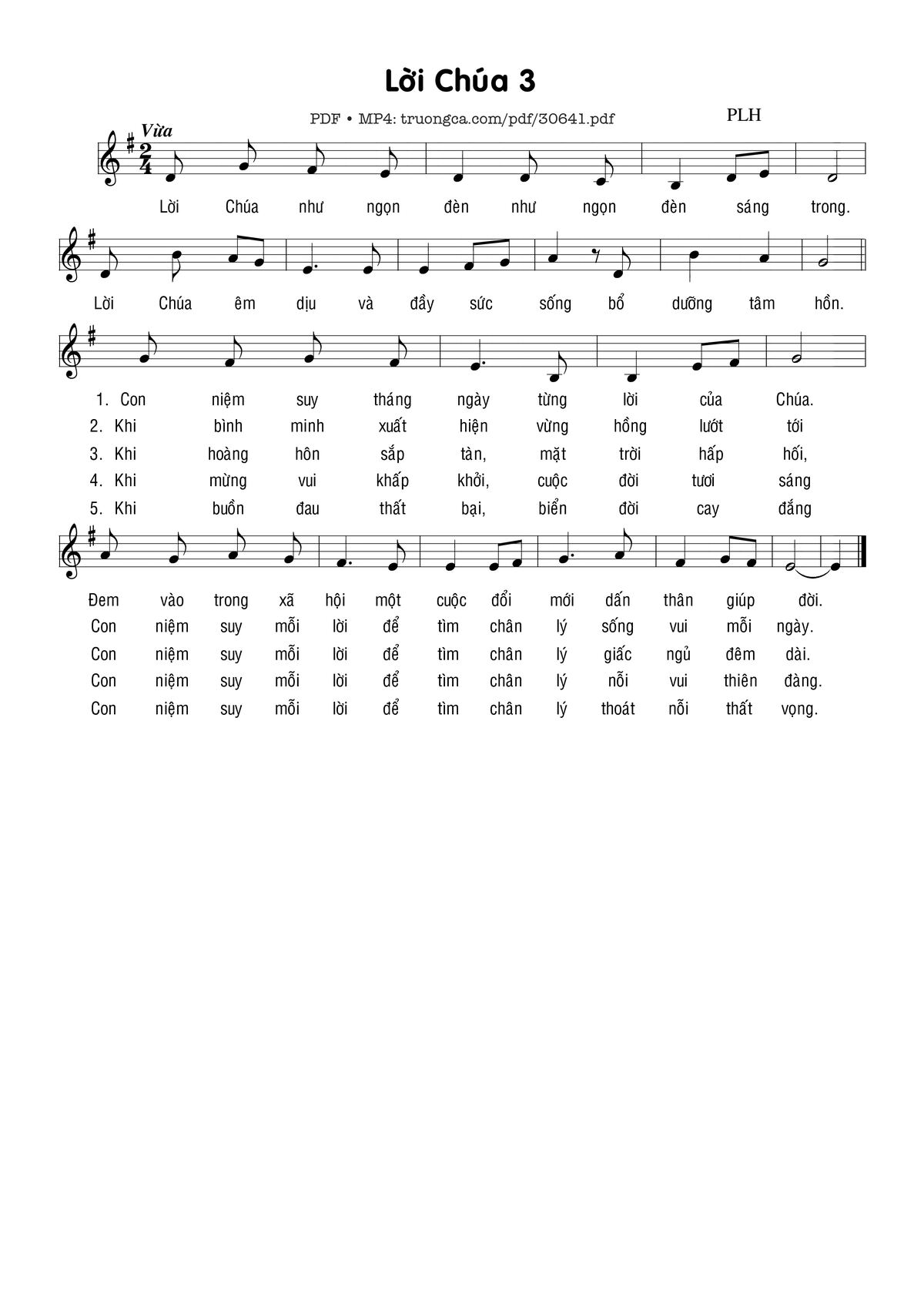 Sheet music Lời Chúa (3) by Phạm Liên Hùng and PDF file was posted here to support you to practice singing perfectly. Sheets with notes and chords are for reference only, for non-commercial purposes only, not involved with earning money by buying and selling. Copyright is belong to song writer/author and copyright owner. Truongca.com do not own any copyrighted content. You can download the high-quality PDF files which contain staffs by PDF link above.