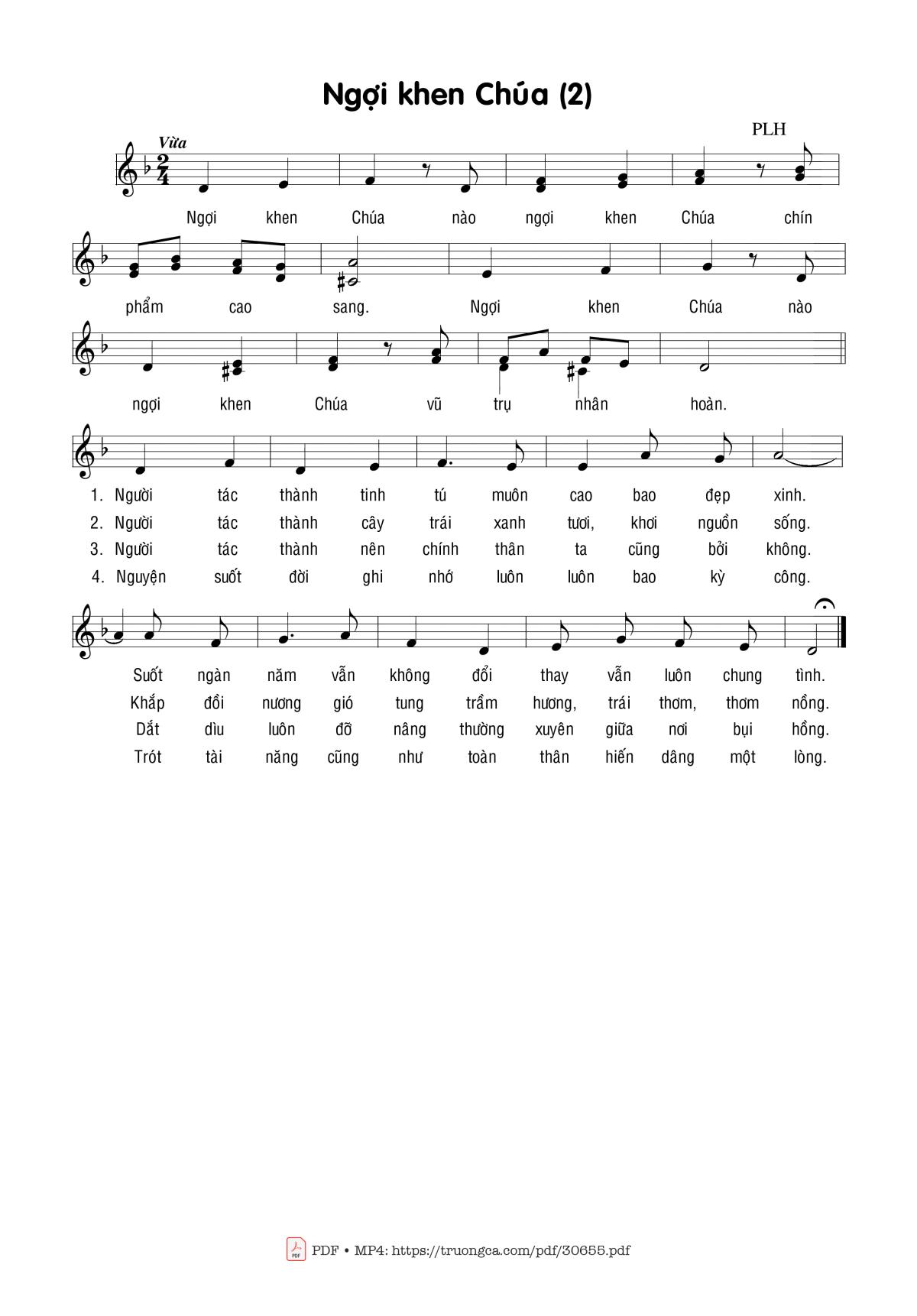 Sheet music Ngợi Khen Chúa (2) by Phạm Liên Hùng and PDF file was posted here to support you to practice singing perfectly. Sheets with notes and chords are for reference only, for non-commercial purposes only, not involved with earning money by buying and selling. Copyright is belong to song writer/author and copyright owner. Truongca.com do not own any copyrighted content. You can download the high-quality PDF files which contain staffs by PDF link above.