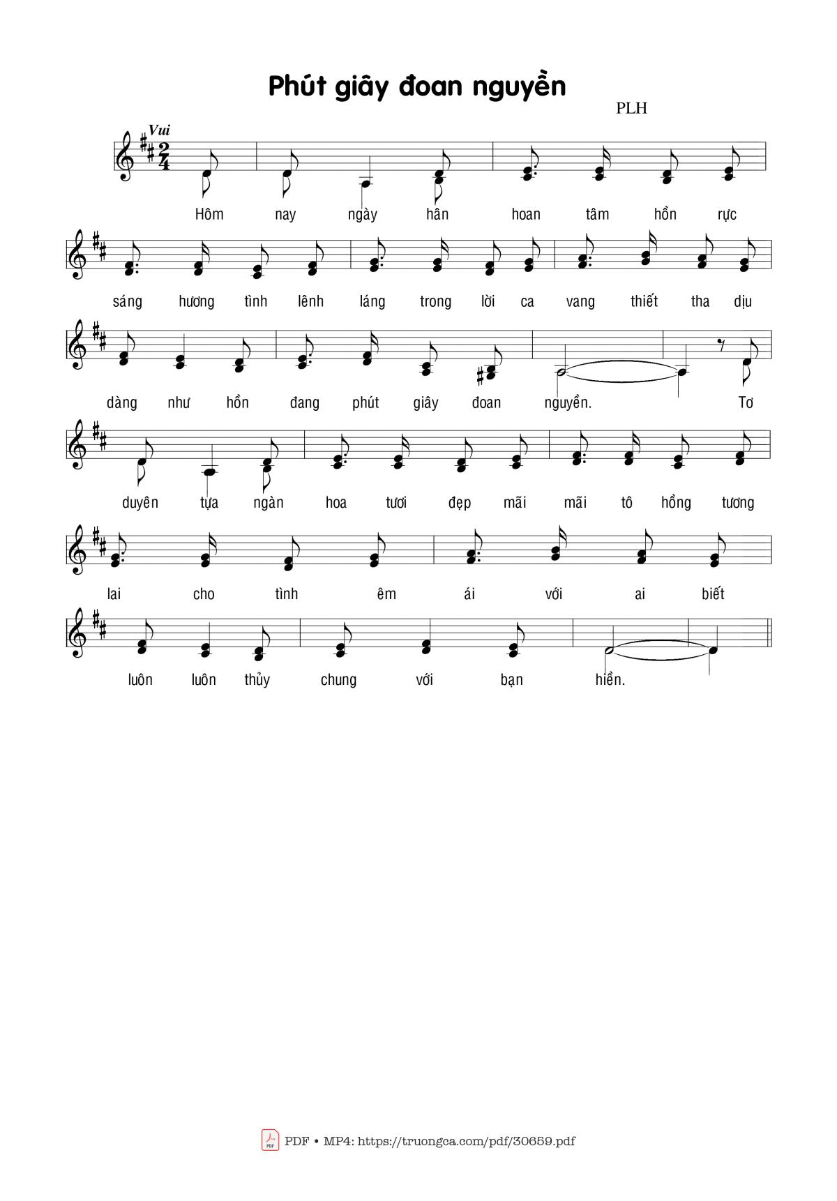Sheet music Phút giây đoan nguyền by Phạm Liên Hùng and PDF file was posted here to support you to practice singing perfectly. Sheets with notes and chords are for reference only, for non-commercial purposes only, not involved with earning money by buying and selling. Copyright is belong to song writer/author and copyright owner. Truongca.com do not own any copyrighted content. You can download the high-quality PDF files which contain staffs by PDF link above.