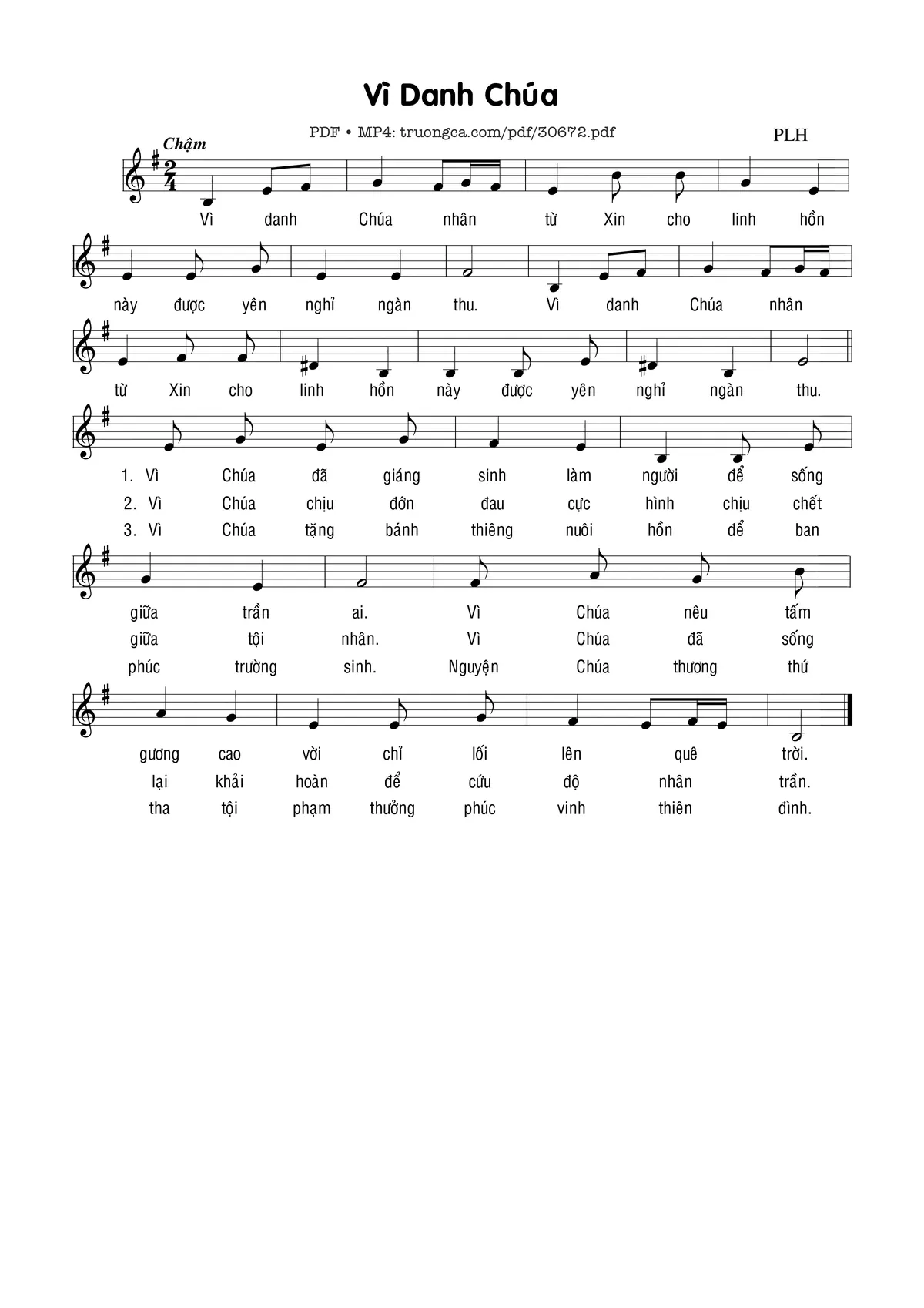 Sheet music Vì Danh Chúa by Phạm Liên Hùng and PDF file was posted here to support you to practice singing perfectly. Sheets with notes and chords are for reference only, for non-commercial purposes only, not involved with earning money by buying and selling. Copyright is belong to song writer/author and copyright owner. Truongca.com do not own any copyrighted content. You can download the high-quality PDF files which contain staffs by PDF link above.