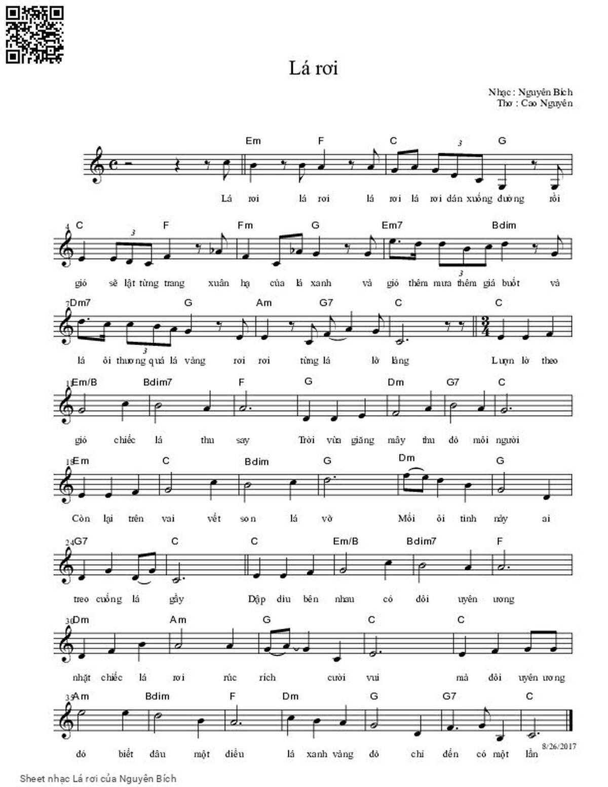 Sheet PDF with the same name Lá rơi: