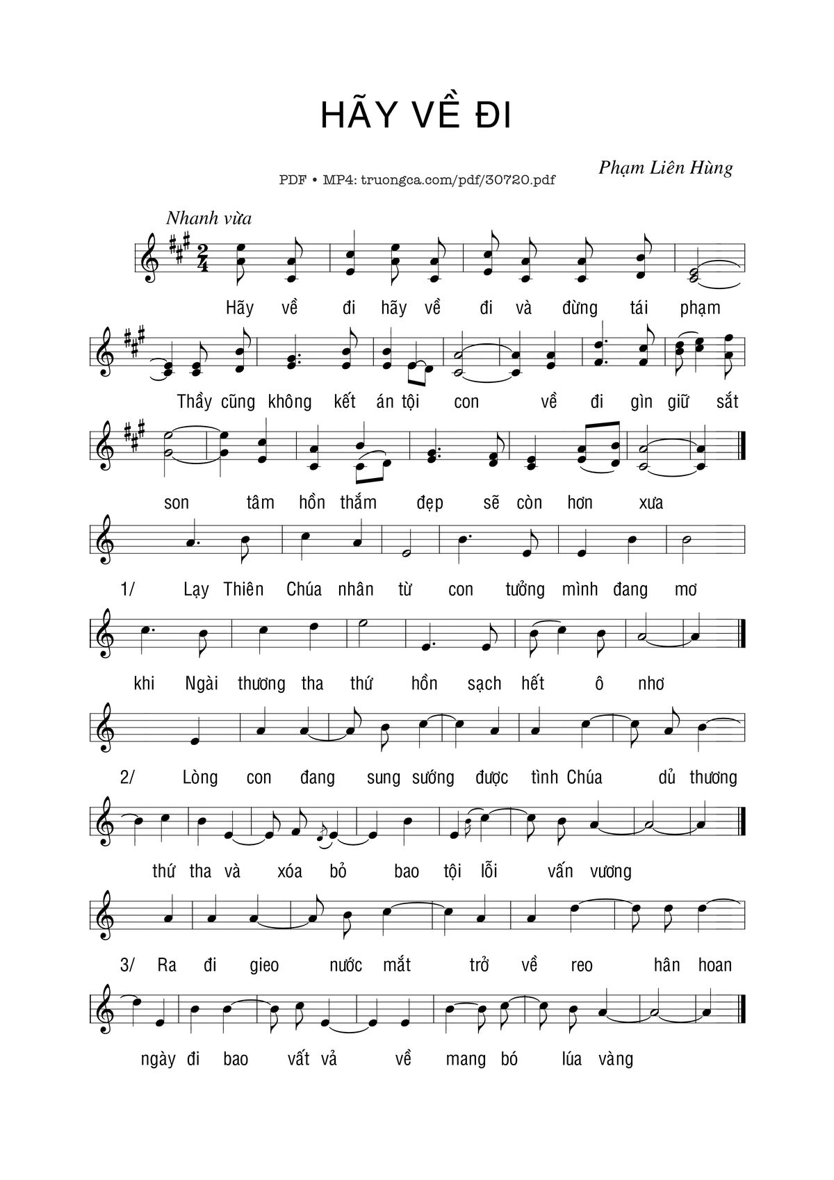 Transposition is the process of moving a song's melody and chords up or down in pitch by a constant interval. The direction of the transposition tool is indicated by a plus (+) sign for up and a minus (-) sign for down. Hover mouse over chords signs to see the chords chart of Hãy về đi song.