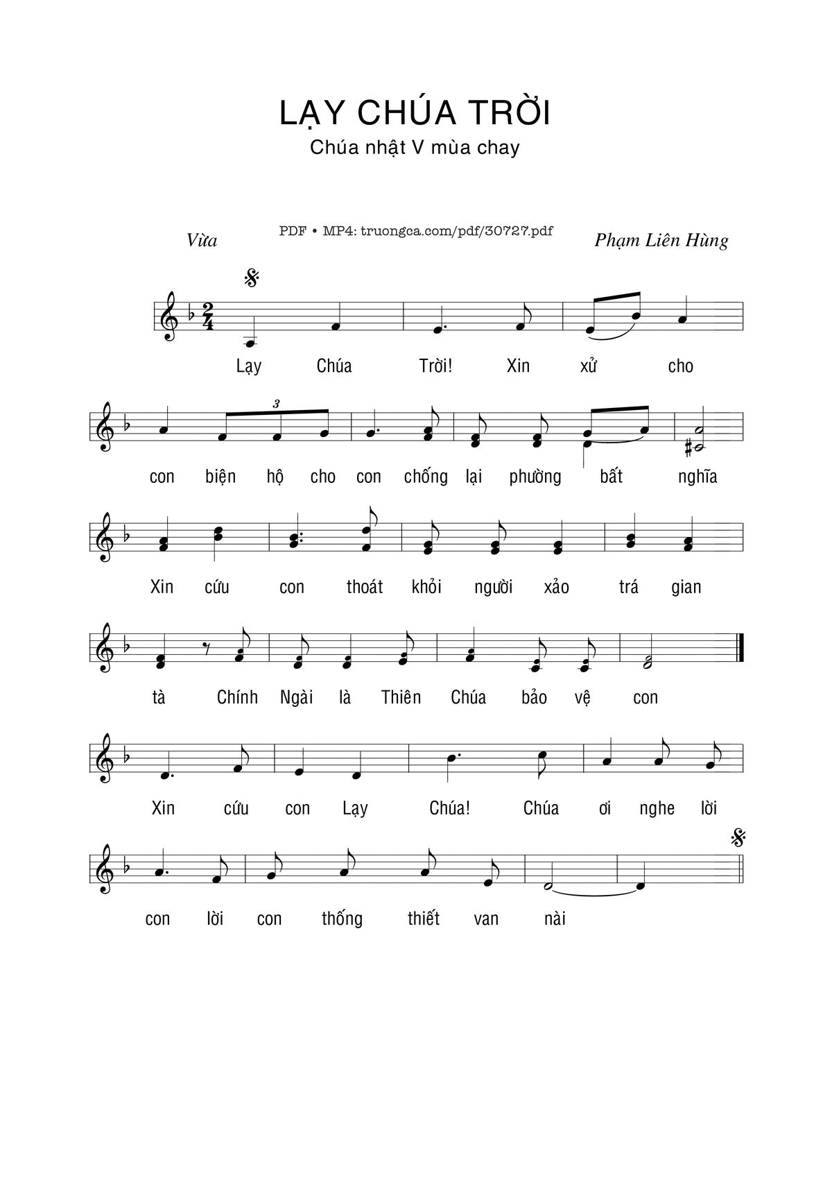 Sheet music Lạy Chúa Trời by Phạm Liên Hùng and PDF file was posted here to support you to practice singing perfectly. Sheets with notes and chords are for reference only, for non-commercial purposes only, not involved with earning money by buying and selling. Copyright is belong to song writer/author and copyright owner. Truongca.com do not own any copyrighted content. You can download the high-quality PDF files which contain staffs by PDF link above.