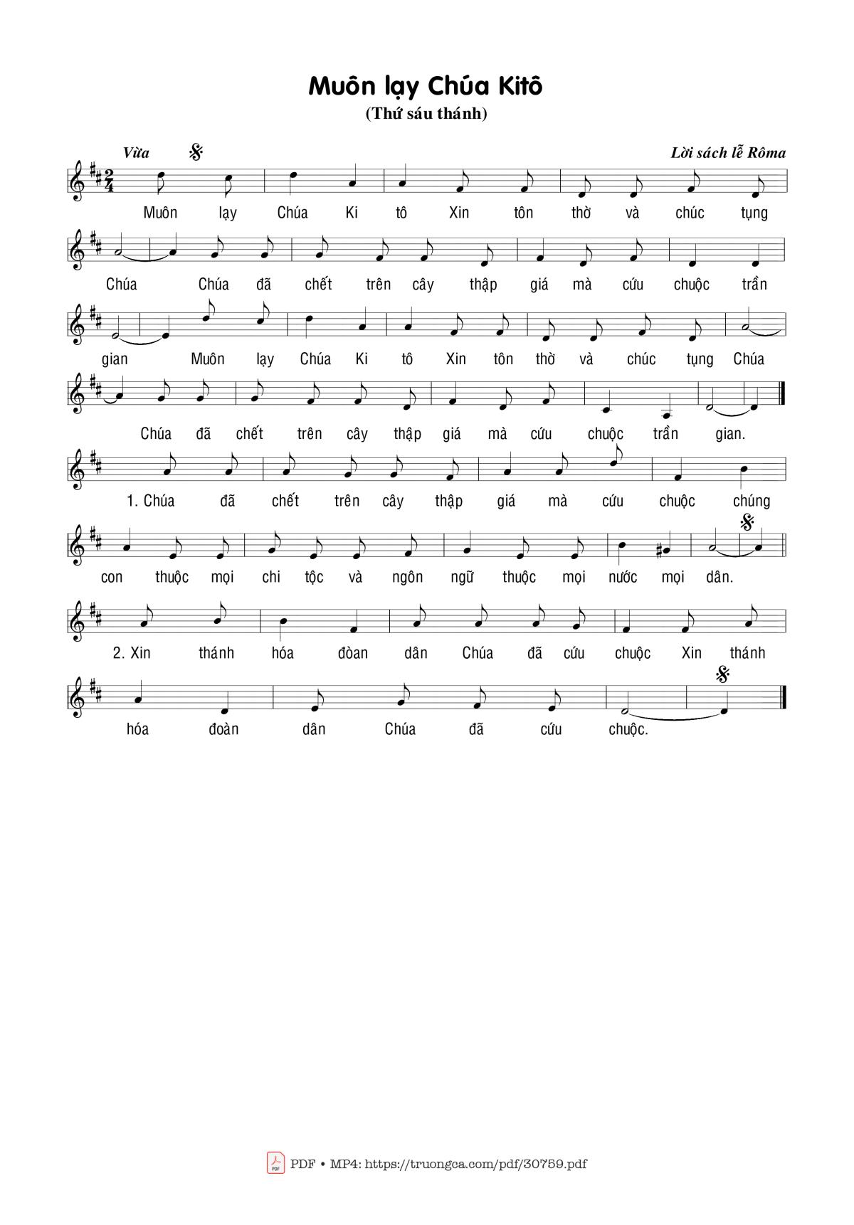 Sheet music Muôn Lạy Chúa Kitô by Phạm Liên Hùng and PDF file was posted here to support you to practice singing perfectly. Sheets with notes and chords are for reference only, for non-commercial purposes only, not involved with earning money by buying and selling. Copyright is belong to song writer/author and copyright owner. Truongca.com do not own any copyrighted content. You can download the high-quality PDF files which contain staffs by PDF link above.