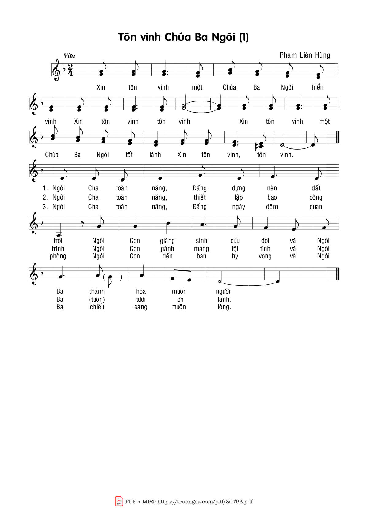 Page 1 of Sheet music PDF Tôn vinh Chúa Ba Ngôi (1) - Phạm Liên Hùng
