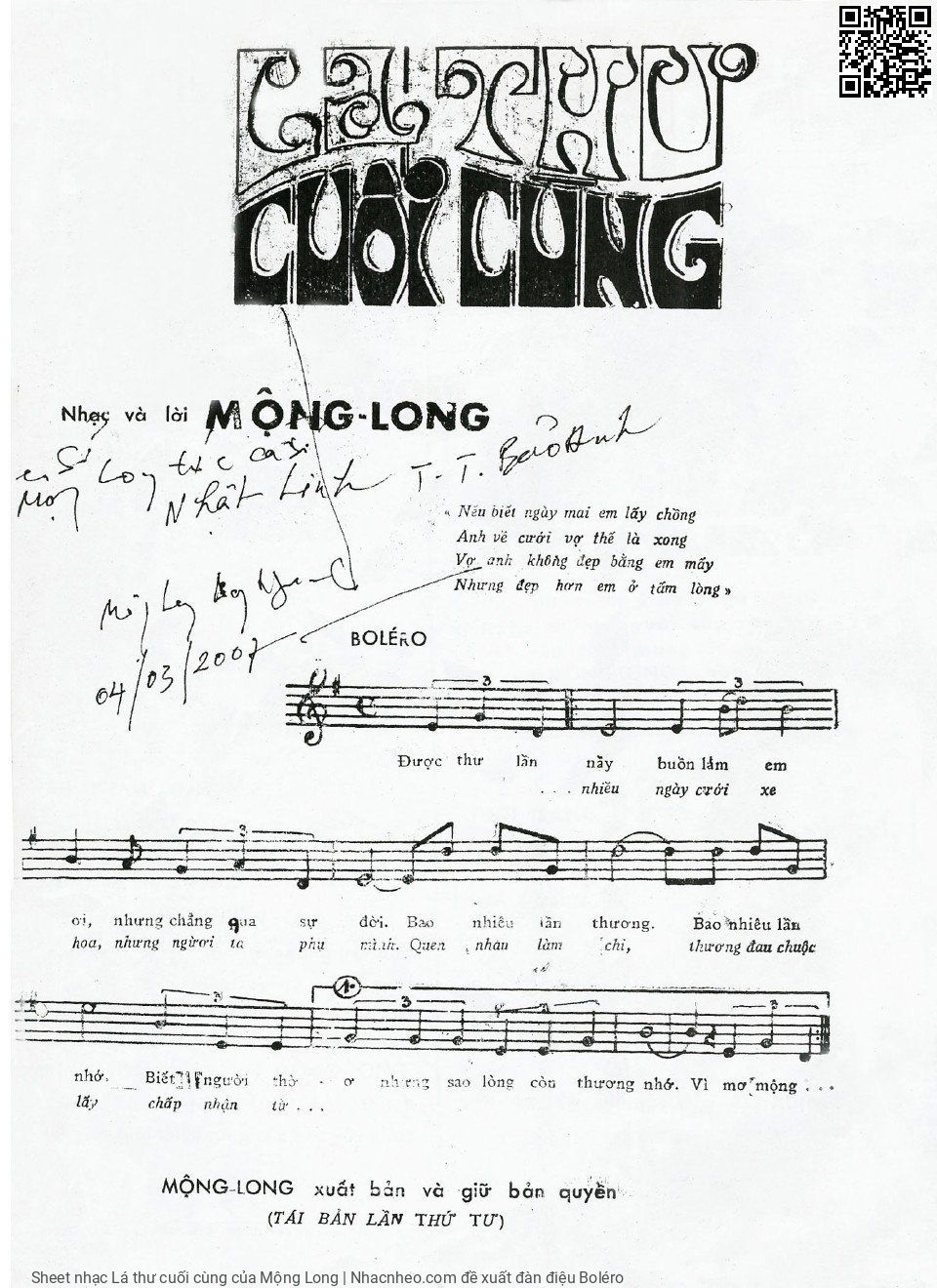 Transposition is the process of moving a song's melody and chords up or down in pitch by a constant interval. The direction of the transposition tool is indicated by a plus (+) sign for up and a minus (-) sign for down. Hover mouse over chords signs to see the chords chart of Lá thư cuối cùng song.