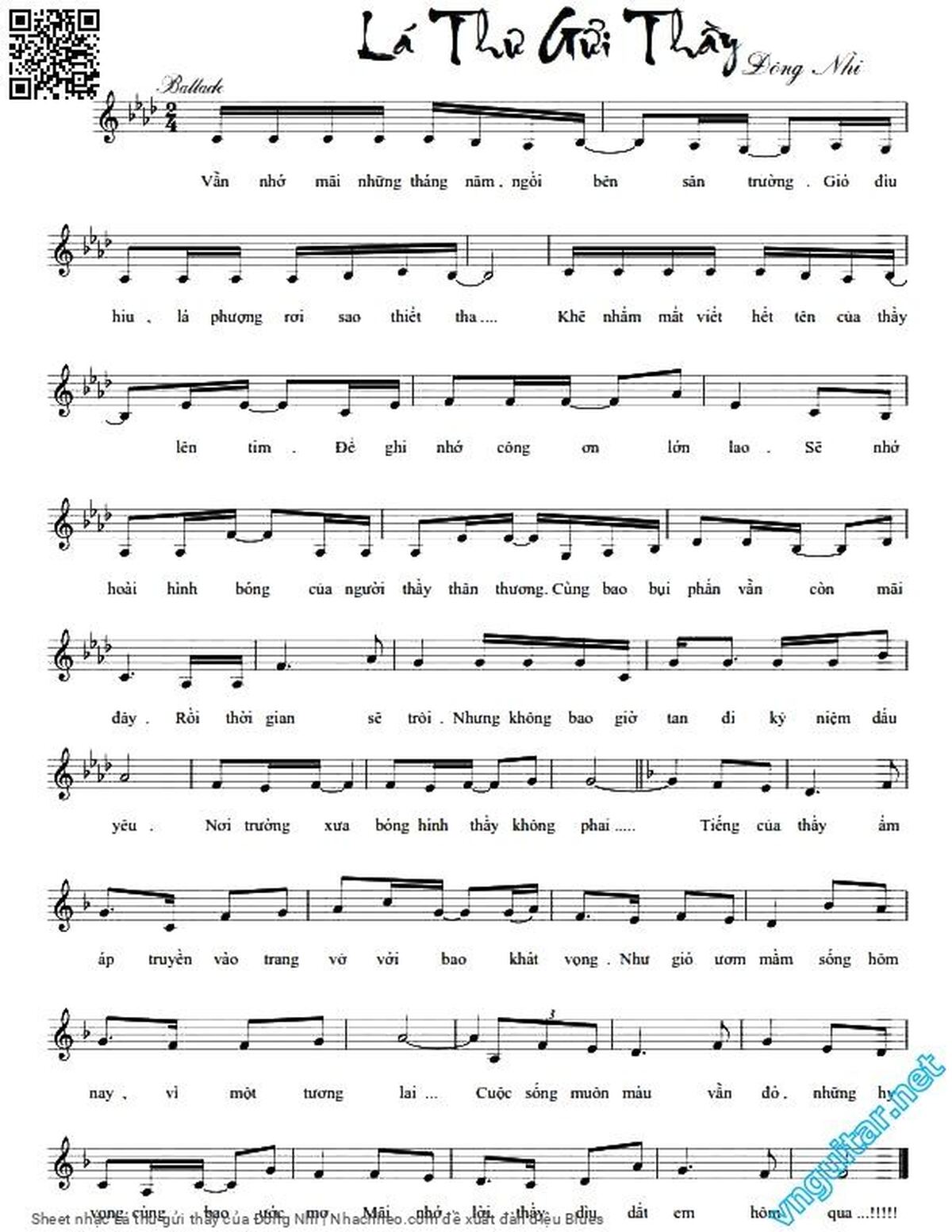 Transposition is the process of moving a song's melody and chords up or down in pitch by a constant interval. The direction of the transposition tool is indicated by a plus (+) sign for up and a minus (-) sign for down. Hover mouse over chords signs to see the chords chart of Lá thư gửi thầy song.
