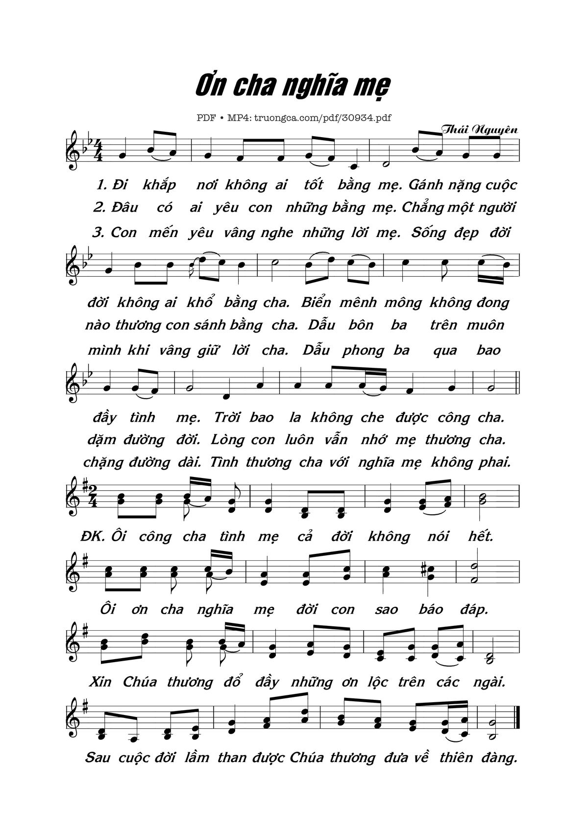 Page 1 of Sheet music PDF Ơn Cha Nghĩa Mẹ - Thái Nguyên