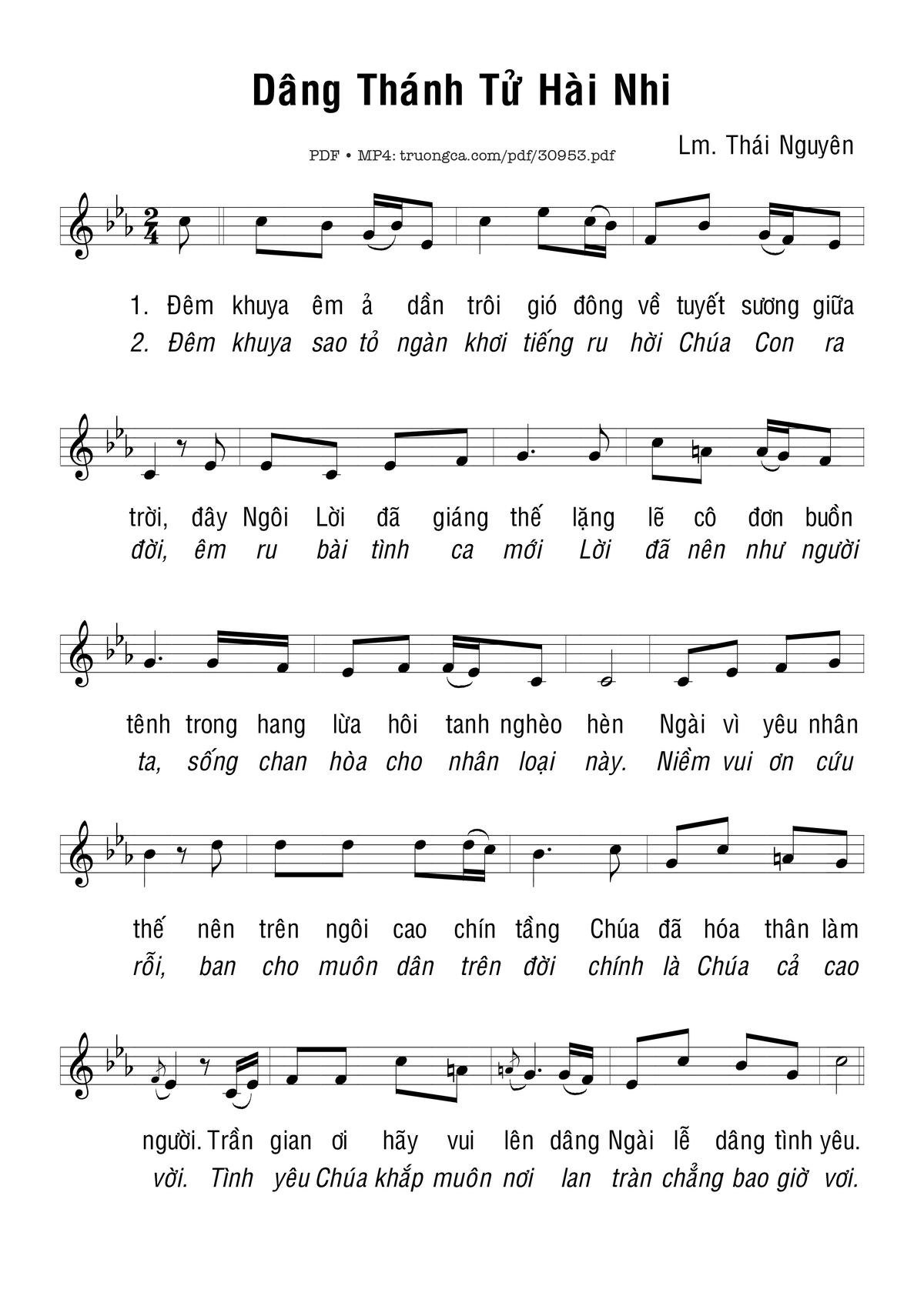 Sheet music Dâng Thánh Tử Hài Nhi by Thái Nguyên and PDF file was posted here to support you to practice singing perfectly. Sheets with notes and chords are for reference only, for non-commercial purposes only, not involved with earning money by buying and selling. Copyright is belong to song writer/author and copyright owner. Truongca.com do not own any copyrighted content. You can download the high-quality PDF files which contain staffs by PDF link above.