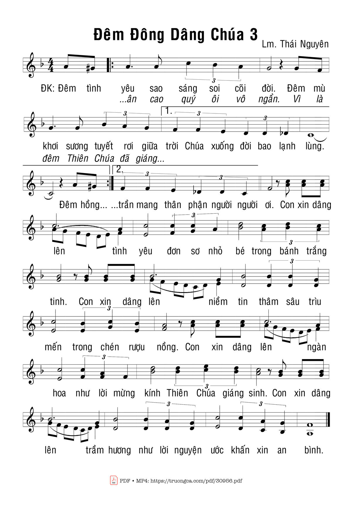 Page 1 of Sheet music PDF Đêm Đông dâng Chúa 3 - Thái Nguyên