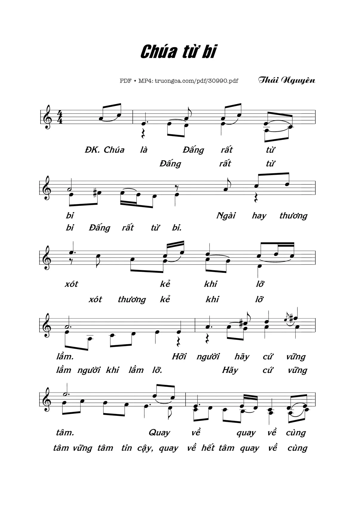 Page 1 of Sheet music PDF Chúa Từ Bi - Thái Nguyên