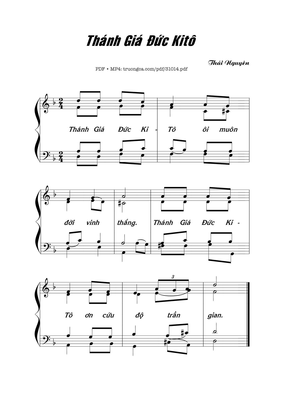 Sheet music Thánh Giá Đức Kitô by Thái Nguyên and PDF file was posted here to support you to practice singing perfectly. Sheets with notes and chords are for reference only, for non-commercial purposes only, not involved with earning money by buying and selling. Copyright is belong to song writer/author and copyright owner. Truongca.com do not own any copyrighted content. You can download the high-quality PDF files which contain staffs by PDF link above.