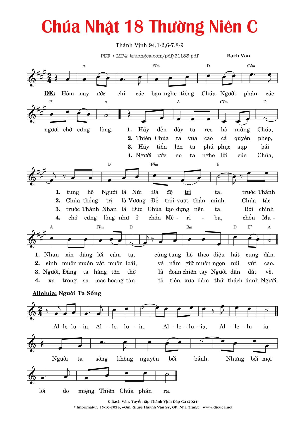 Sheet PDF with the same name Thánh Vịnh 94 (Chúa Nhật 18C thường niên):