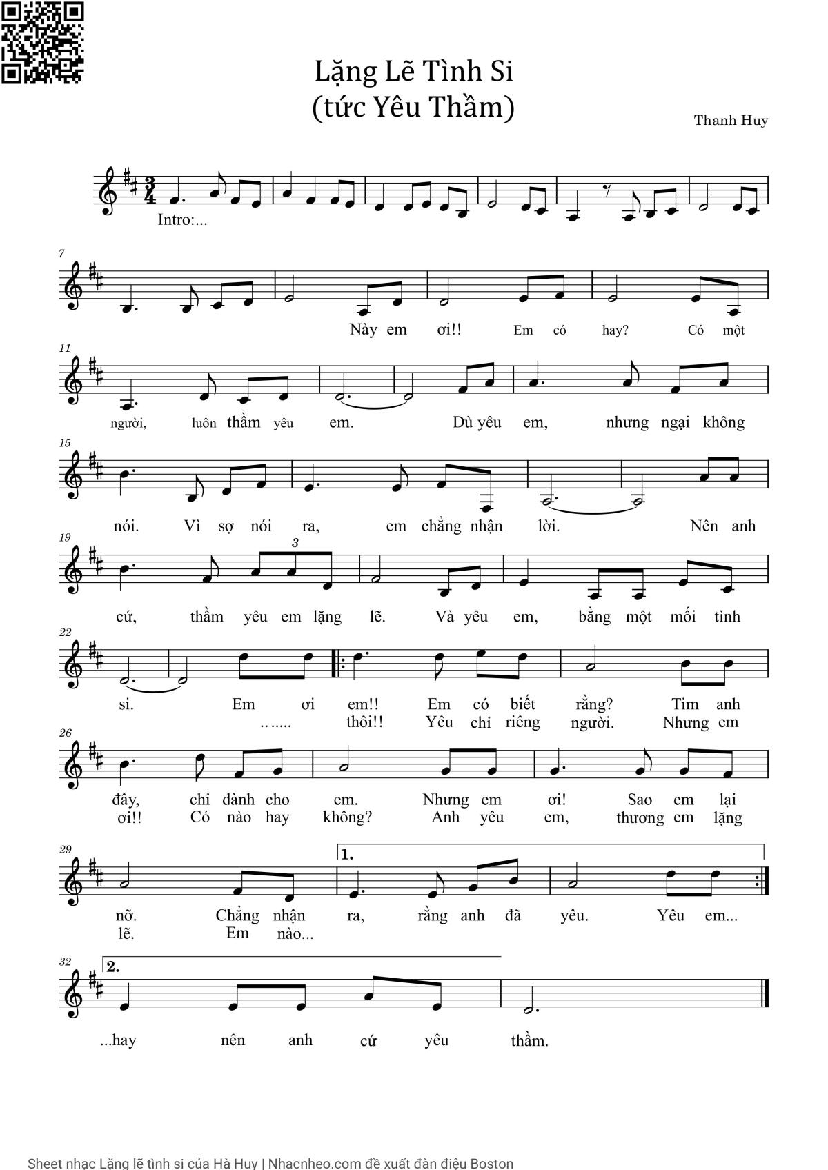 The Videos/audios Lặng lẽ tình si by Hà Huy were embed from Youtube, Musescore or the other 3rd links. Videos are subject to 3rd's copyright control and may be removed by YouTube's copyright rules and 3rd's policies or maybe included advertisements. If you cannot access to these songs, this mean that have been removed.