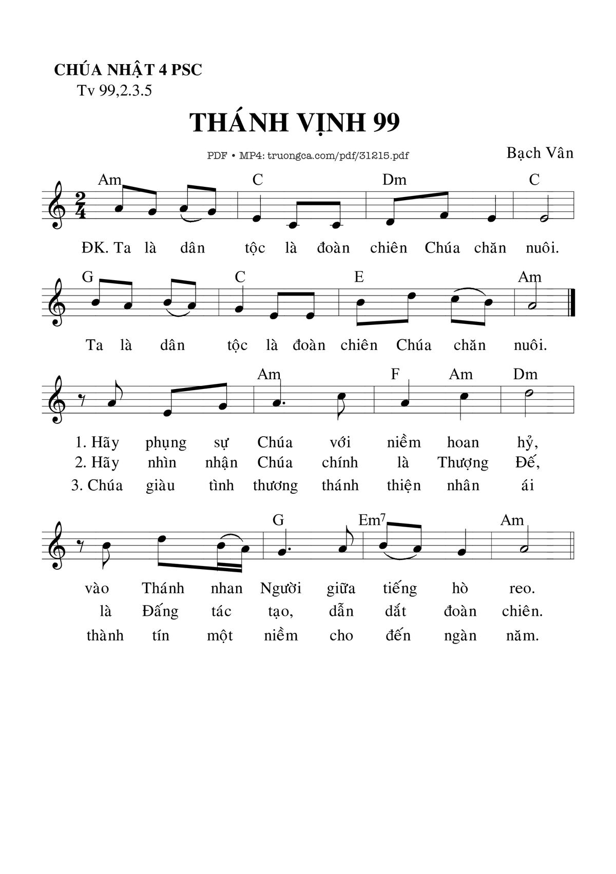 Sheet Thánh Vịnh 99, Chúa Nhật 4C Phục Sinh PDF (Bạch Vân), chords