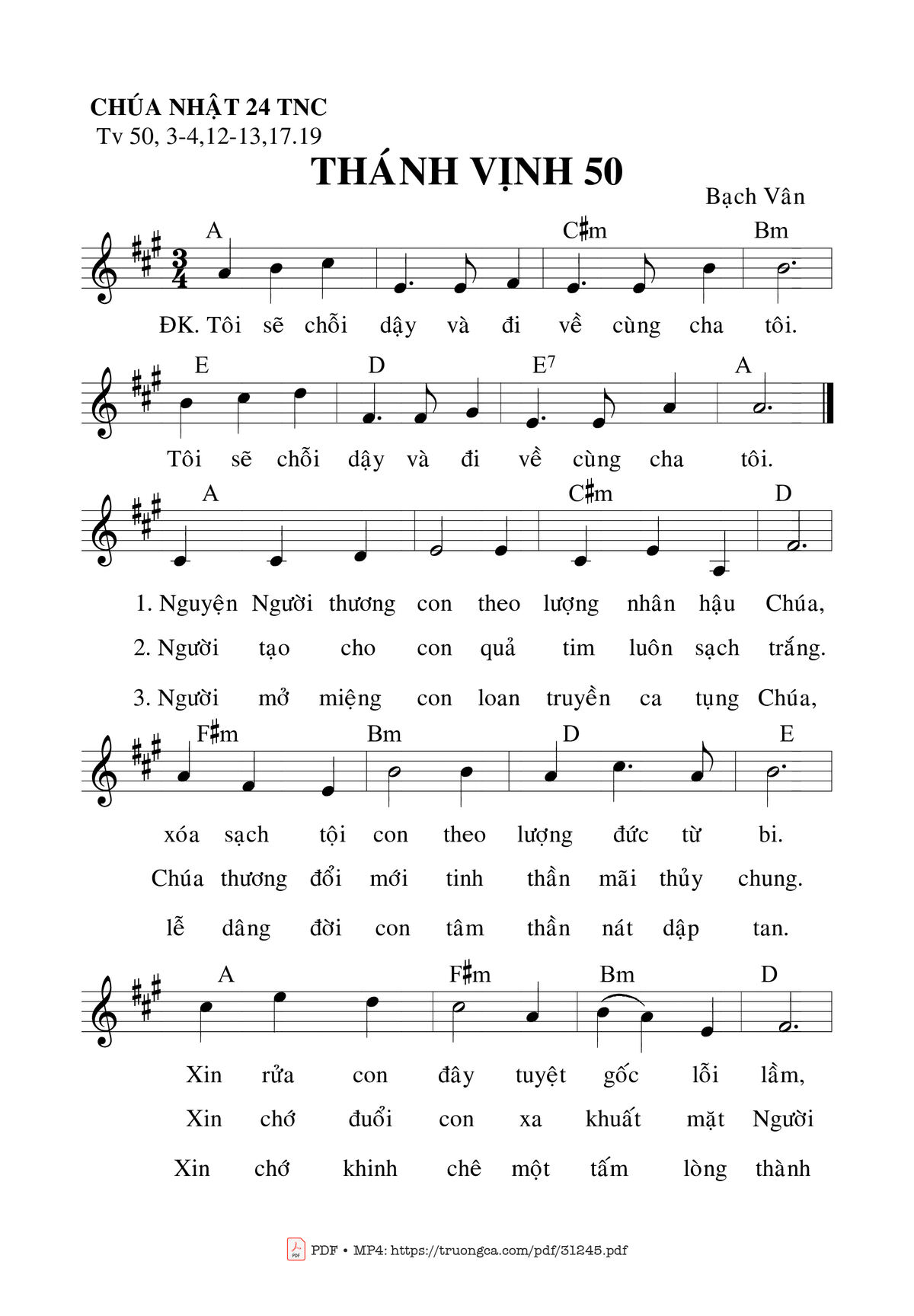 Page 1 of Sheet music PDF Thánh Vịnh 50, Chúa Nhật 24C Thường Niên - Bạch Vân