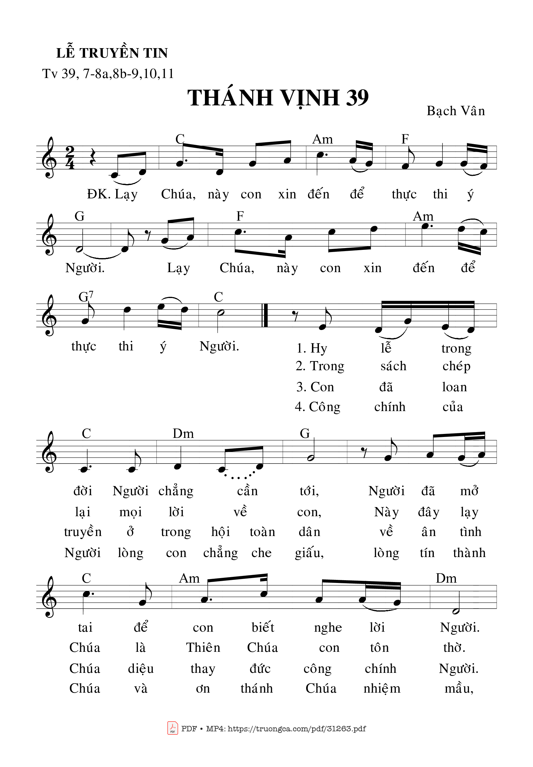 Page 1 of Sheet music PDF Thánh Vịnh 39, Lễ Truyền Tin - Bạch Vân