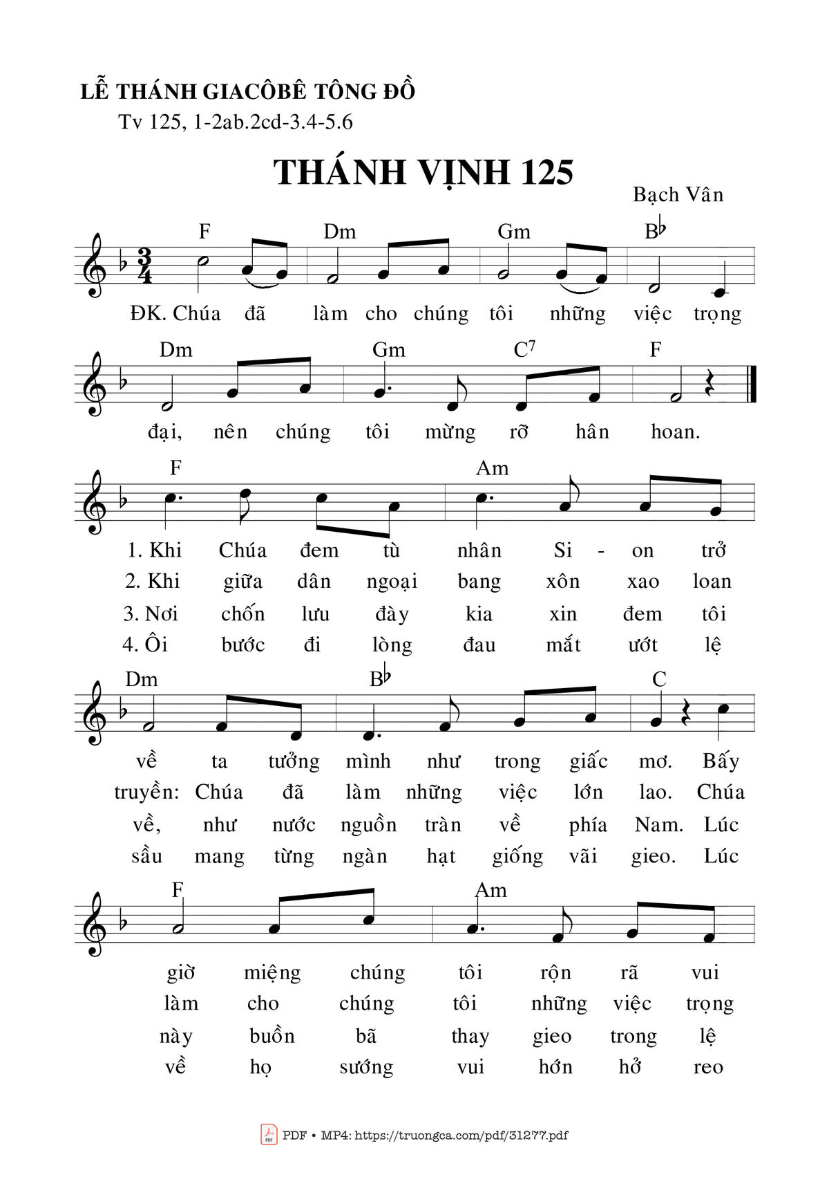 Page 1 of Sheet music PDF Thánh Vịnh 125, Lễ Thánh Gia-Cô-Bê Tông Đồ - Bạch Vân