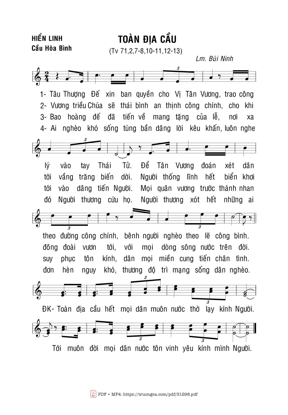 Page 1 of Sheet music PDF Toàn Địa Cầu - Bùi Ninh