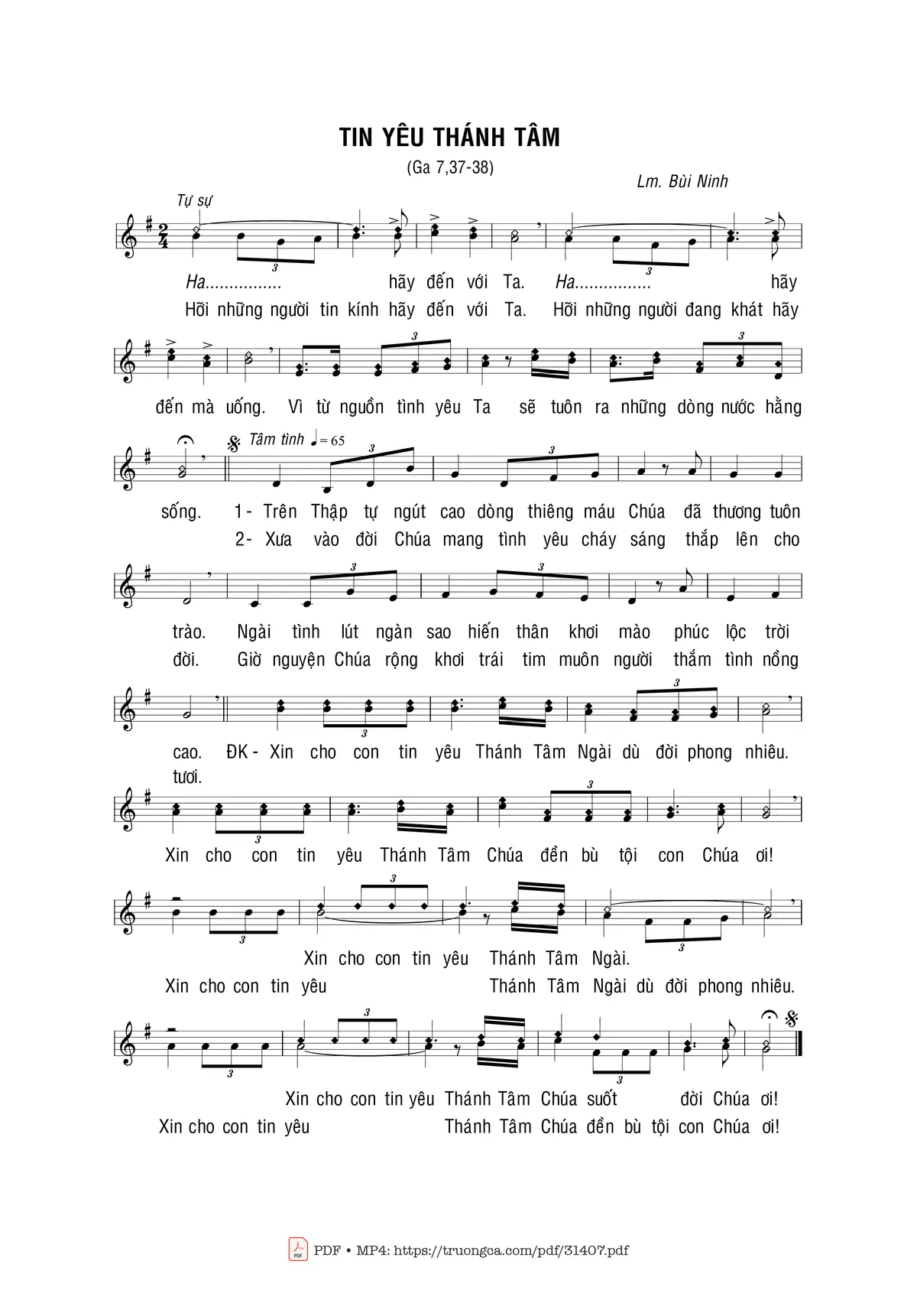 Sheet music Tin Yêu Thánh Tâm by Bùi Ninh and PDF file was posted here to support you to practice singing perfectly. Sheets with notes and chords are for reference only, for non-commercial purposes only, not involved with earning money by buying and selling. Copyright is belong to song writer/author and copyright owner. Truongca.com do not own any copyrighted content. You can download the high-quality PDF files which contain staffs by PDF link above.
