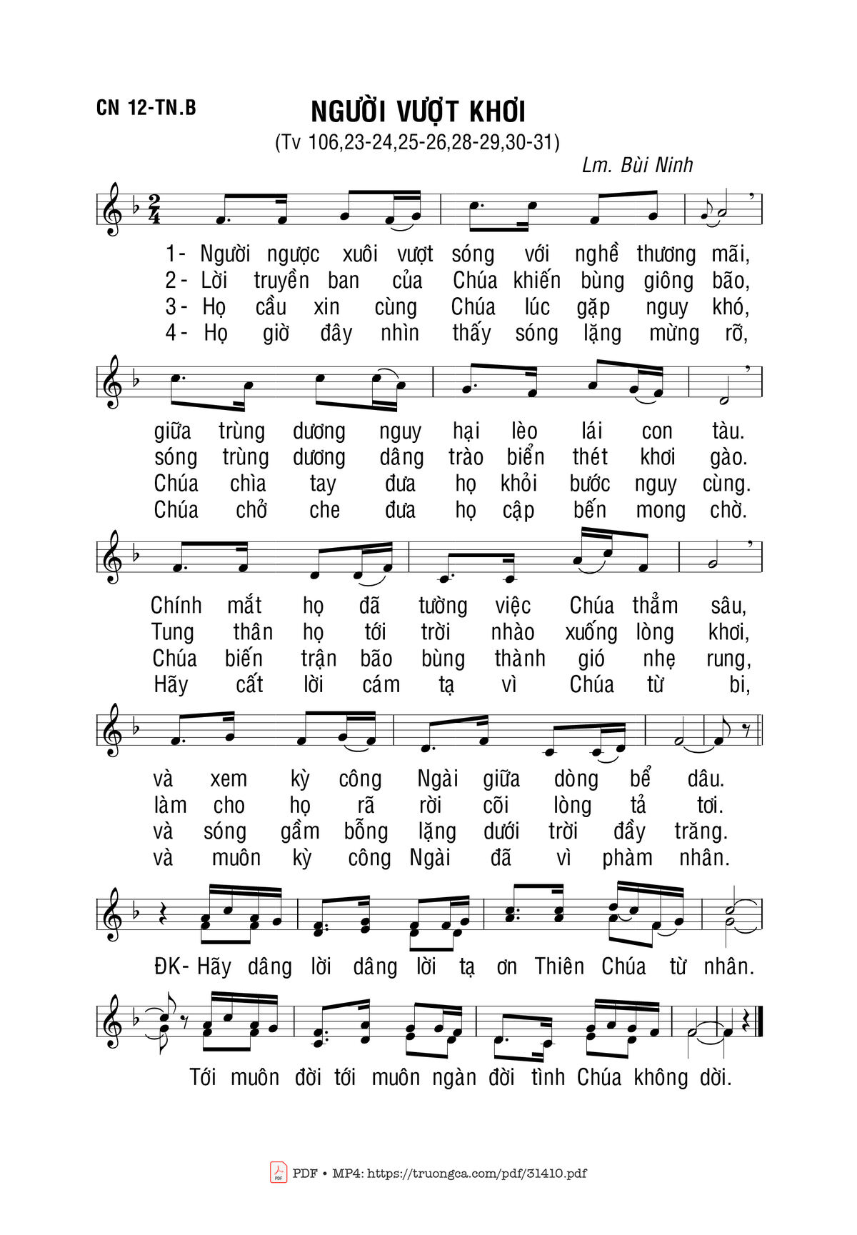 Sheet music Người Vượt Khơi by Bùi Ninh and PDF file was posted here to support you to practice singing perfectly. Sheets with notes and chords are for reference only, for non-commercial purposes only, not involved with earning money by buying and selling. Copyright is belong to song writer/author and copyright owner. Truongca.com do not own any copyrighted content. You can download the high-quality PDF files which contain staffs by PDF link above.