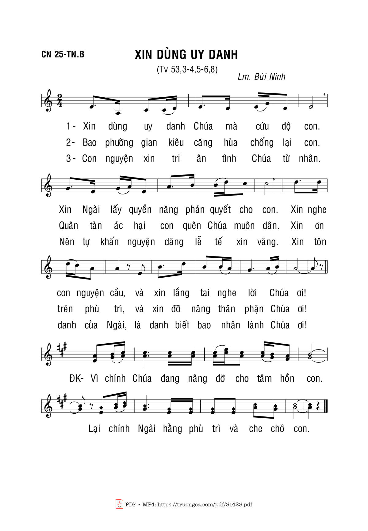 Page 1 of Sheet music PDF Xin Dùng Uy Danh - Bùi Ninh