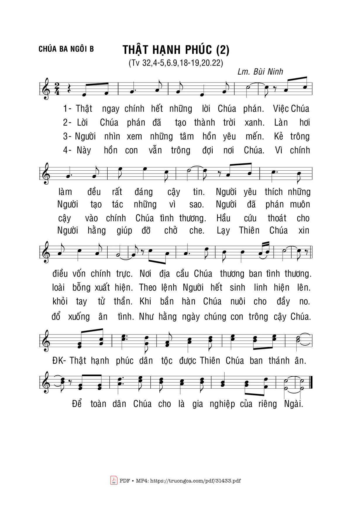 Sheet music Thật Hạnh Phúc (2) by Bùi Ninh and PDF file was posted here to support you to practice singing perfectly. Sheets with notes and chords are for reference only, for non-commercial purposes only, not involved with earning money by buying and selling. Copyright is belong to song writer/author and copyright owner. Truongca.com do not own any copyrighted content. You can download the high-quality PDF files which contain staffs by PDF link above.