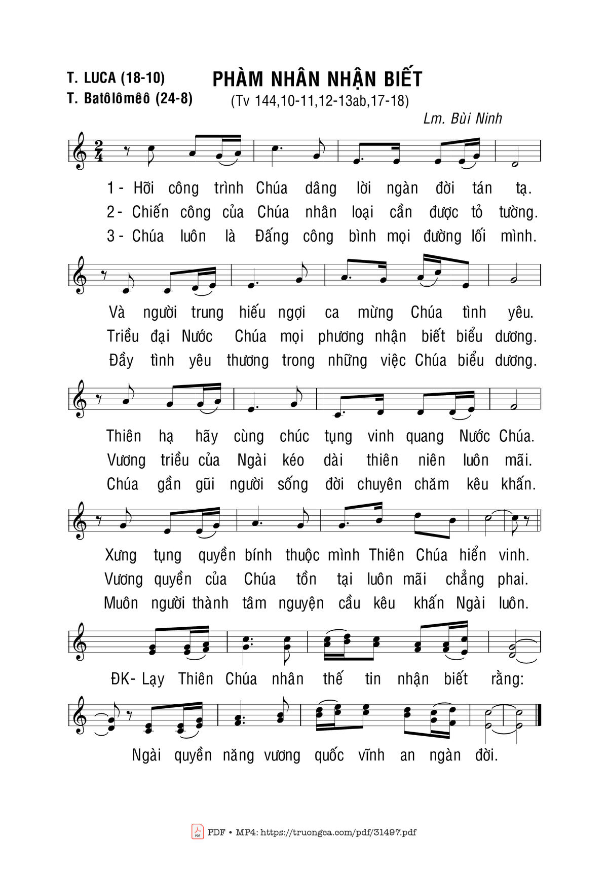 More similar sheets PDF Thánh Vịnh 144, Phàm Nhân Nhận Biết: