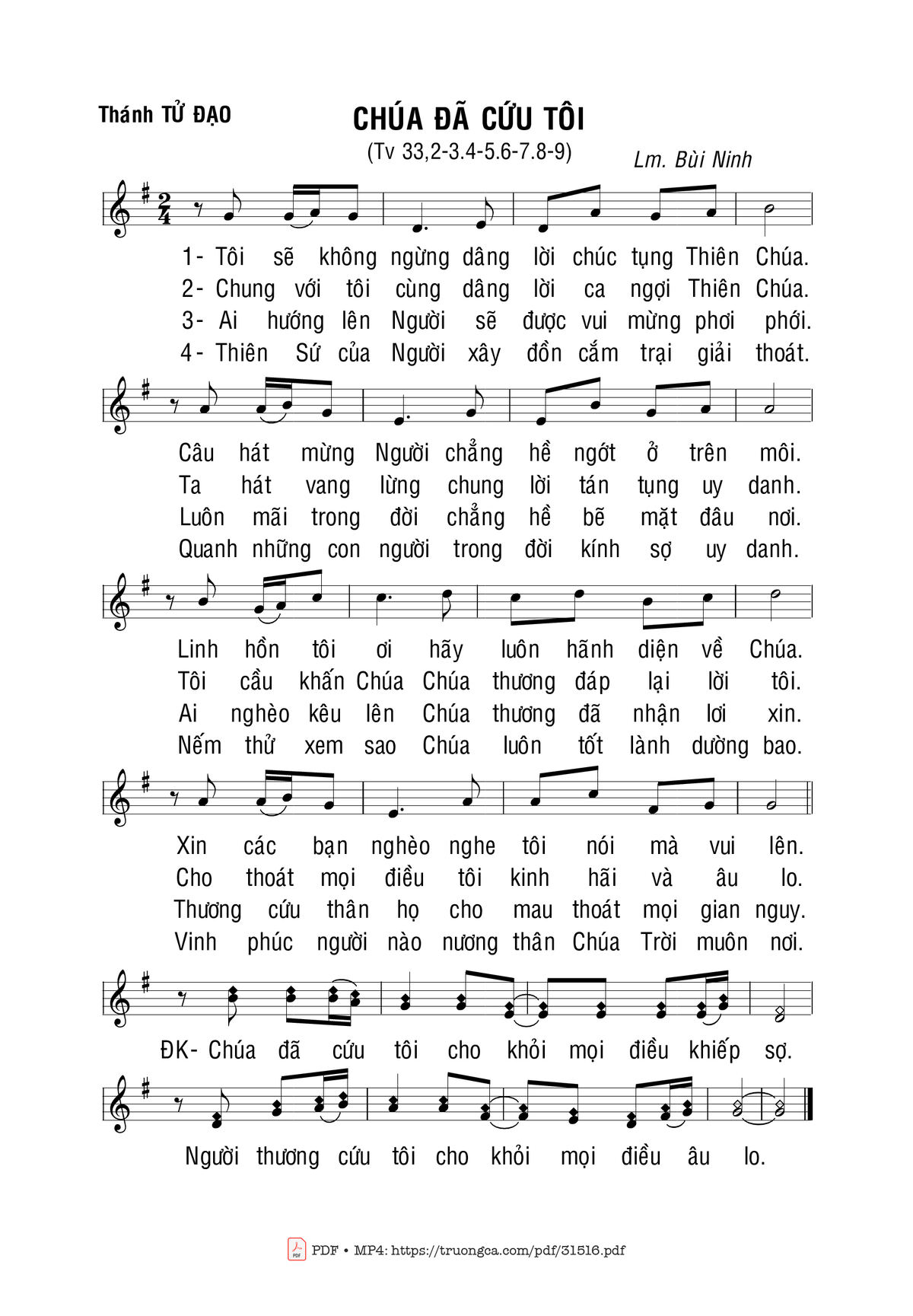 More similar sheets PDF Thánh Vịnh 33, Chúa Đã Cứu Tôi: