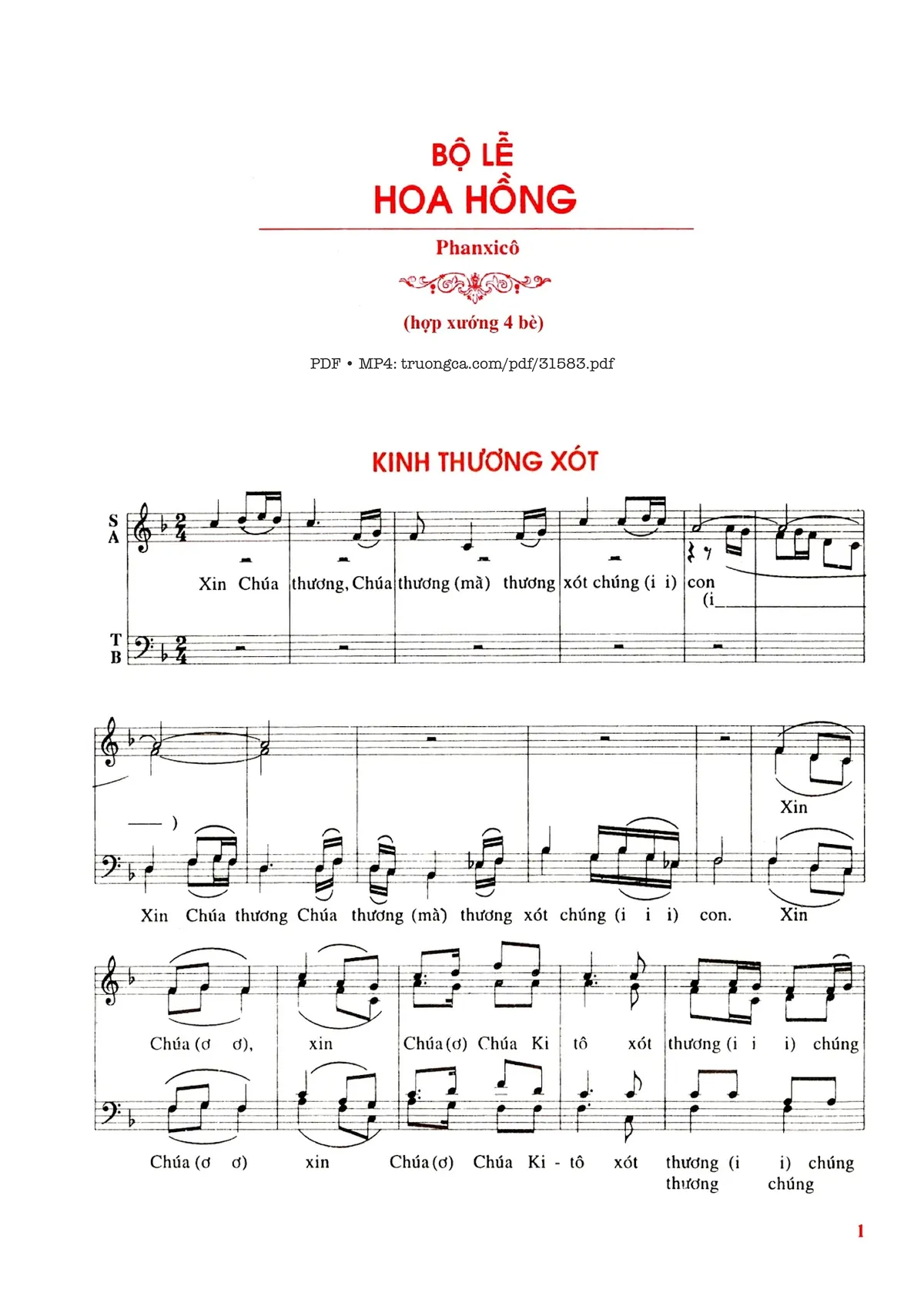 Page 1 of Sheet music PDF Bộ Lễ Hoa Hồng (4 Bè) - Phanxico