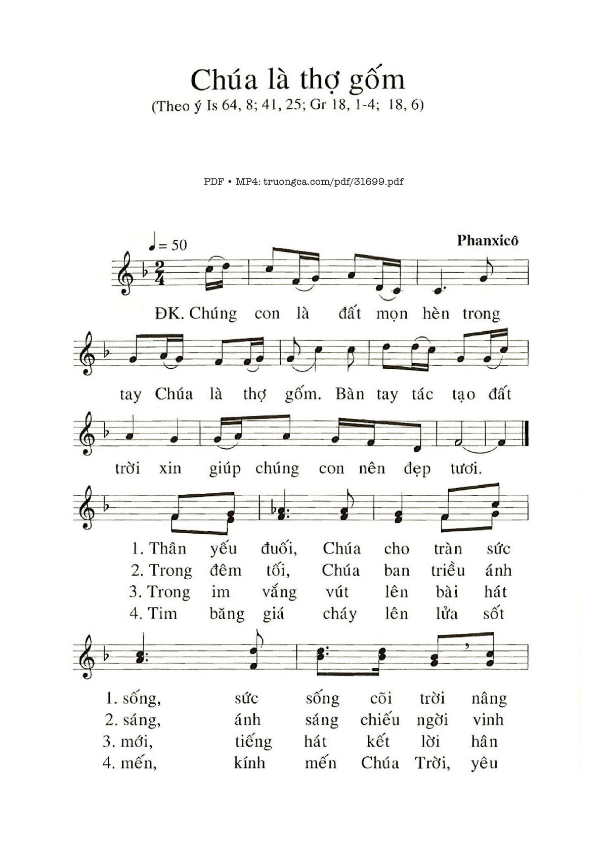 Page 1 of Sheet music PDF Chúa Là Thợ Gốm - Phanxico