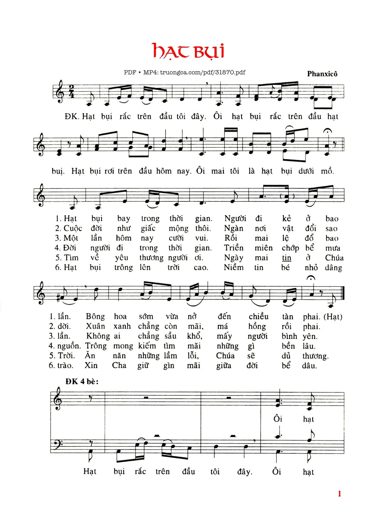 Page 1 of Sheet music PDF Hạt Bụi - Phanxico
