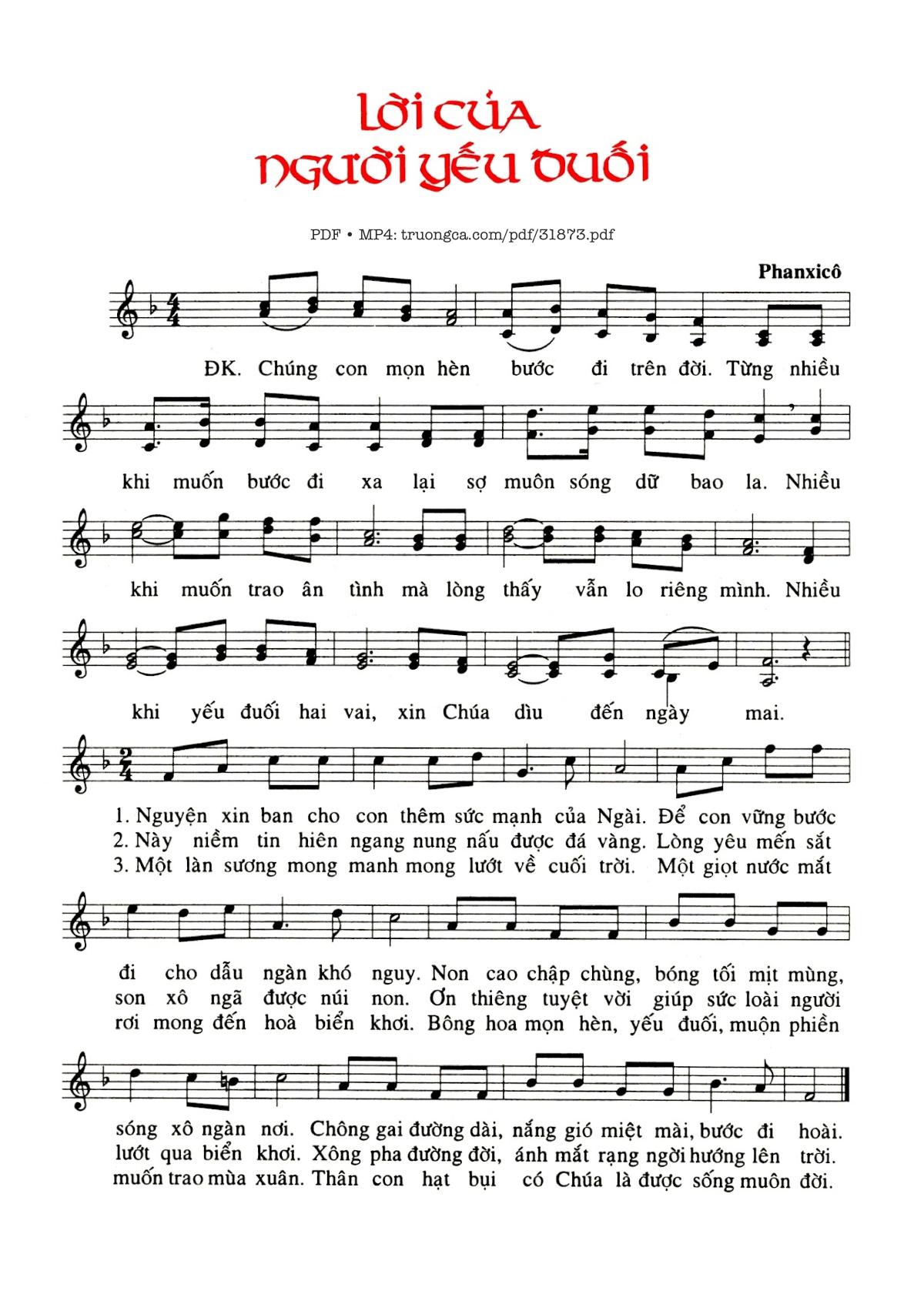 Phanxico [PDF] [Sheet] [Lyrics] vi en