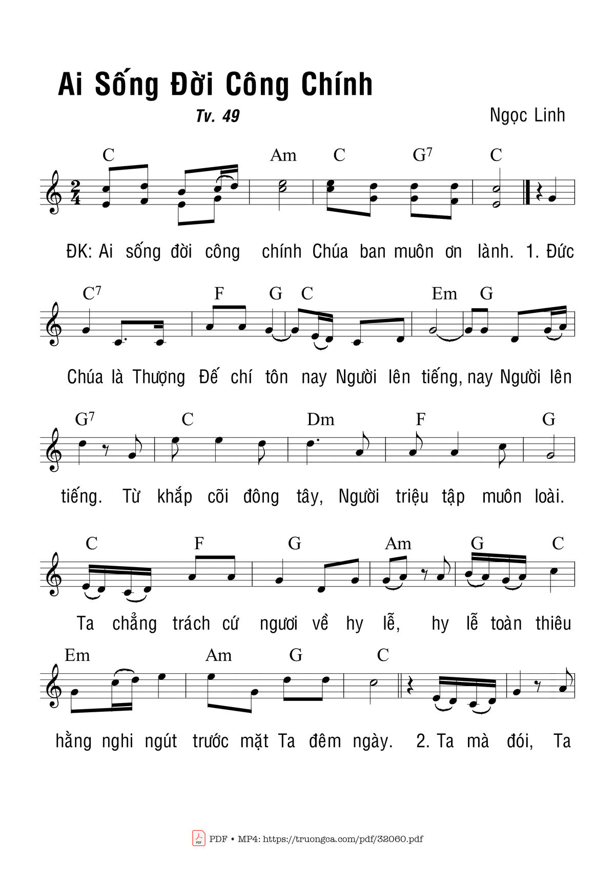 Sheet PDF with the same name Thánh Vịnh 49, Ai Sống Đời Công Chính: