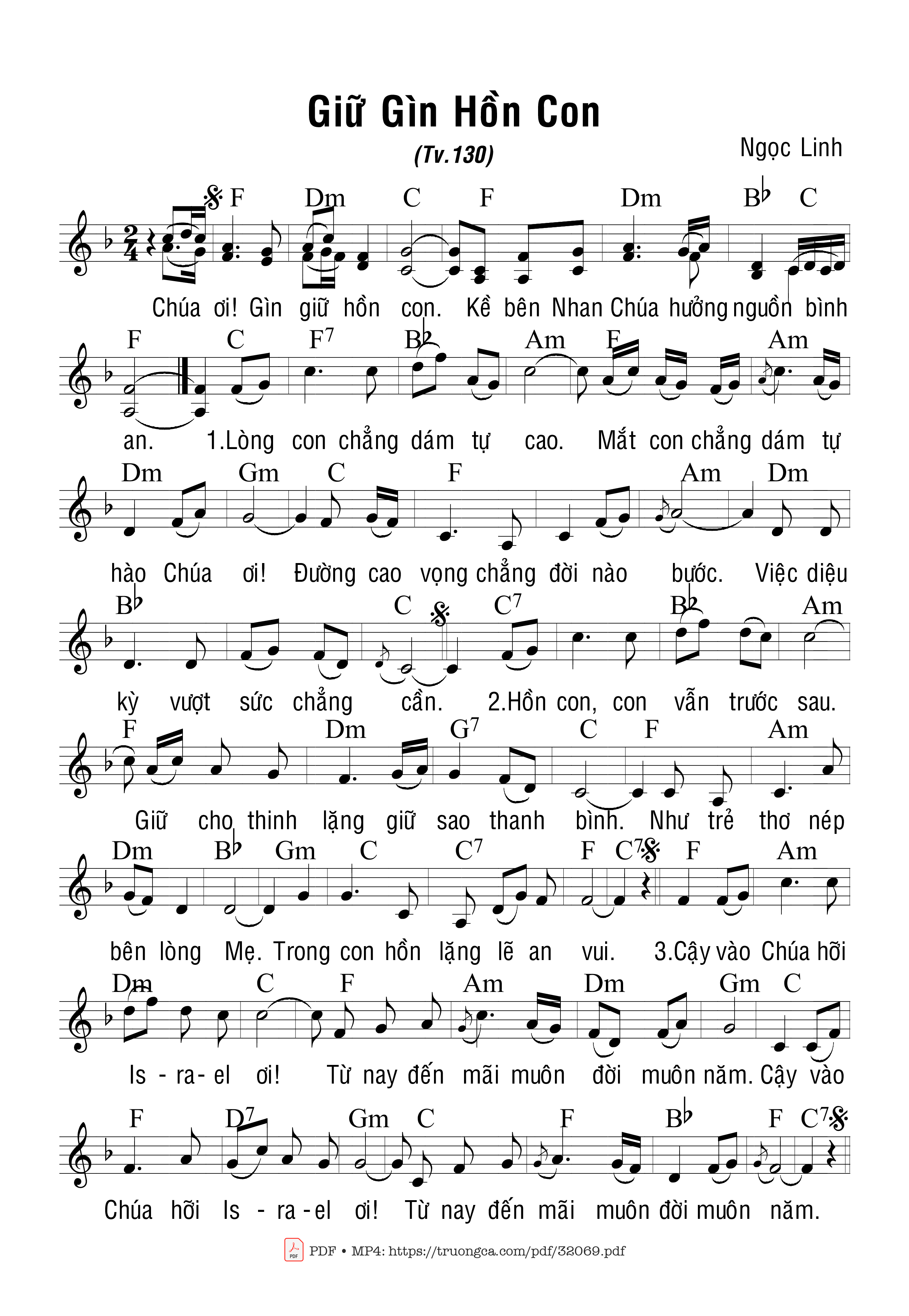 More similar sheets PDF Thánh Vịnh 130, Giữ Gìn Hồn Con: