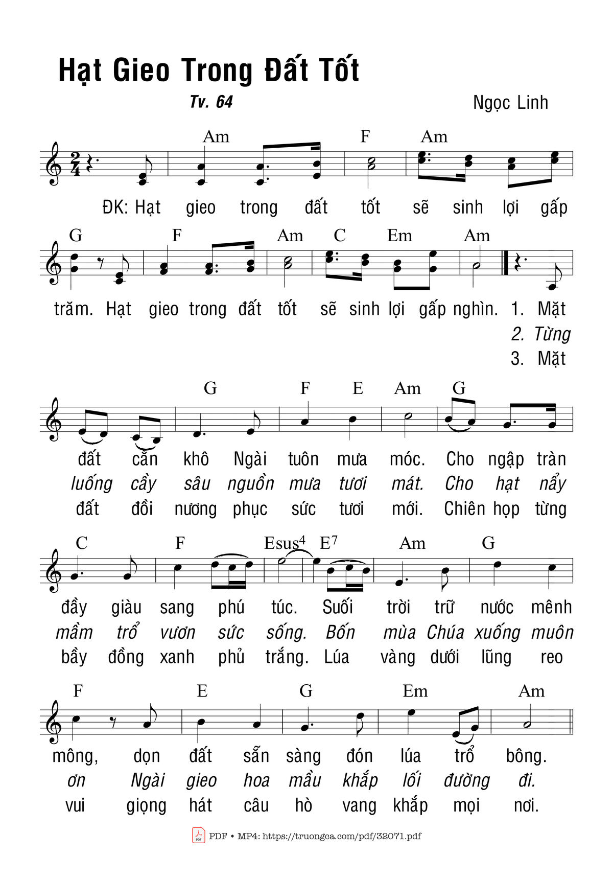 More similar sheets PDF Thánh Vịnh 64, Hạt Gieo Trong Đất Tốt: