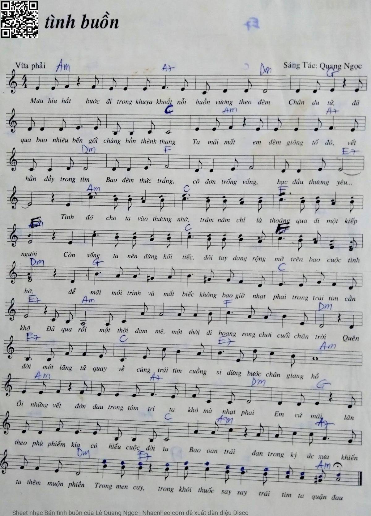 Lê Quang Ngọc Mưa hiu hắt bước đi trong khuya khoắt nỗi buồn vương theo đêm [PDF] [Sheet] [Lyrics] [Mp4/Midi]
