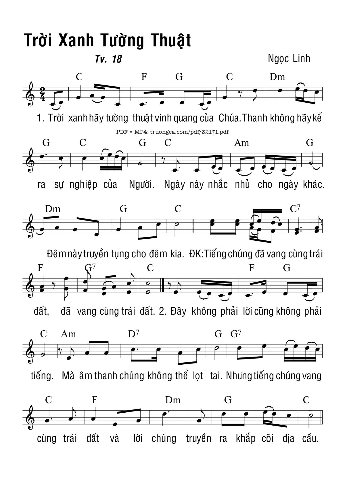 More similar sheets PDF Thánh Vịnh 18, Trời Xanh Tường Thuật: