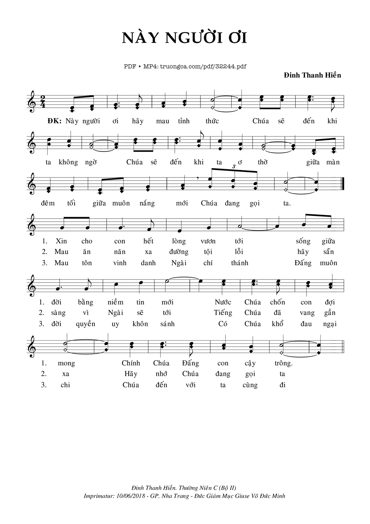 Đinh Thanh Hiền Này người ơi hãy mau tỉnh thức Chúa sẽ đến khi ta không ngờ [PDF] [Sheet] [Lyrics] [Mp4/Midi]