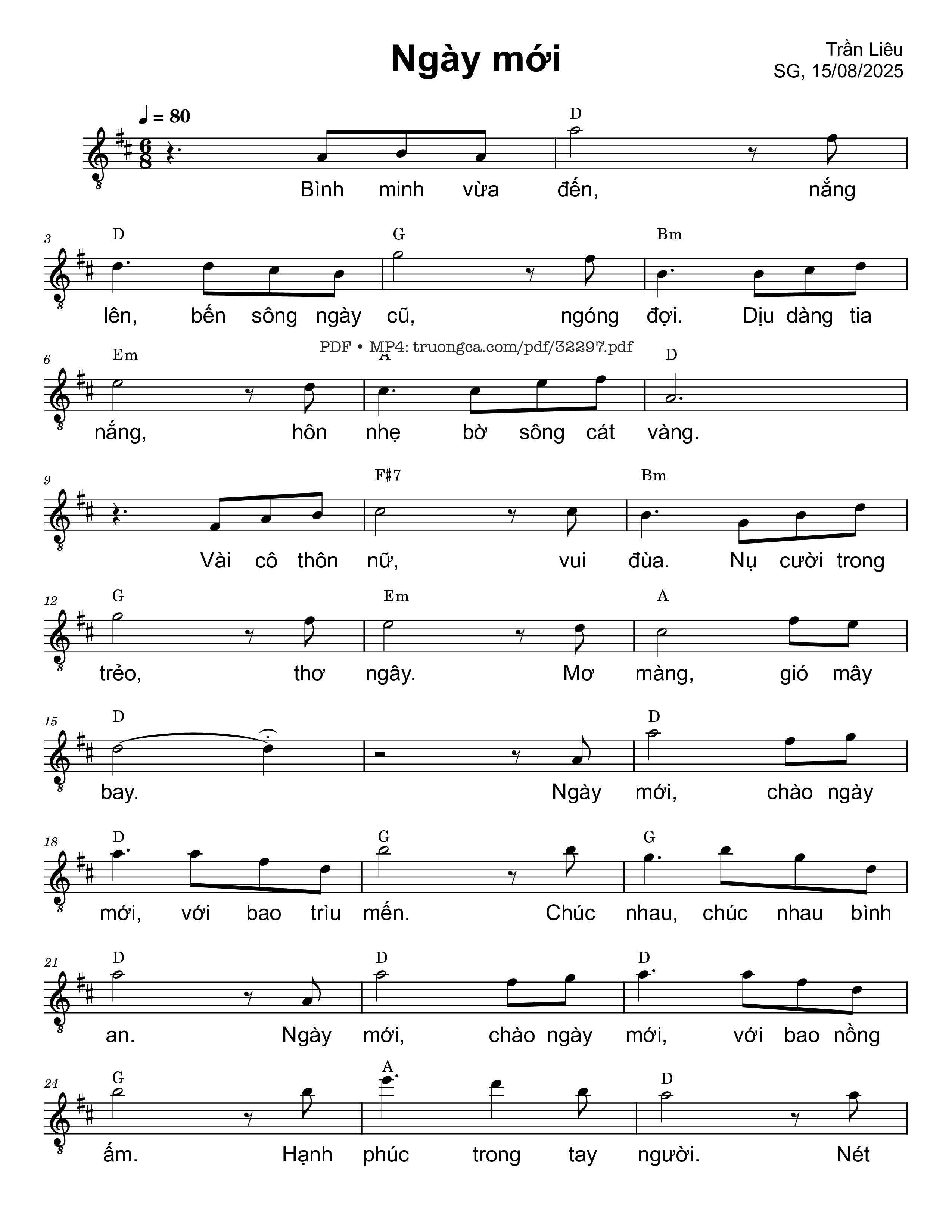 The Videos/audios Ngày mới by Trần Liêu were embed from Youtube, Musescore or the other 3rd links. Videos are subject to 3rd's copyright control and may be removed by YouTube's copyright rules and 3rd's policies or maybe included advertisements. If you cannot access to these songs, this mean that have been removed.