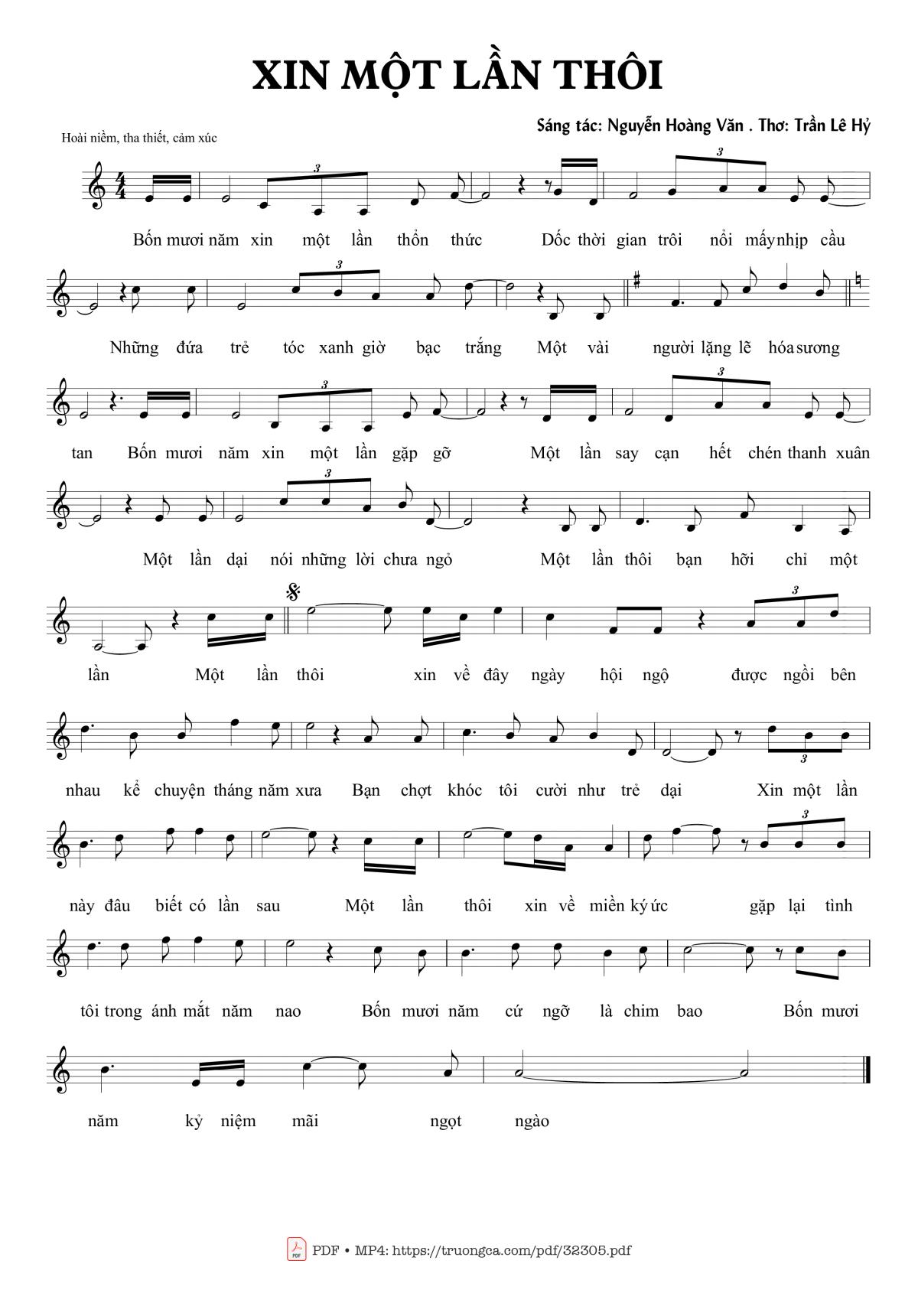 Nguyễn Hoàng Văn Bốn mươi năm xin một lần thổn thức Dốc thời gian trôi nổi mấy nhịp cầu [PDF] [Sheet] [Lyrics] [Mp4/Midi]