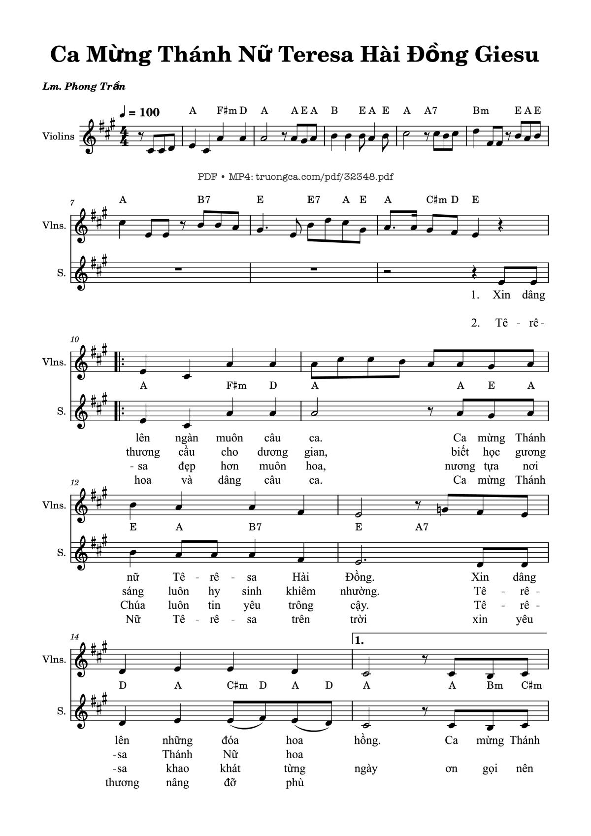 Sheet PDF with the same name Ca Mừng Thánh Teresa Hài Đồng Giêsu (Đệm violin):