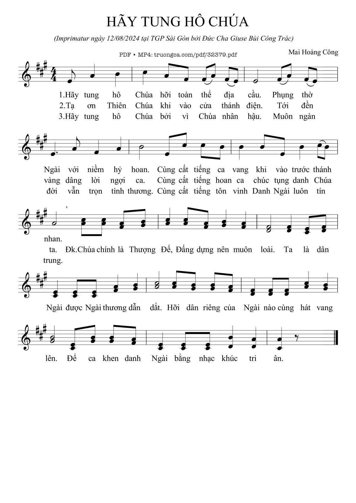 Sheet Hãy Tung Hô Chúa PDF (Mai Hoàng Công), chords