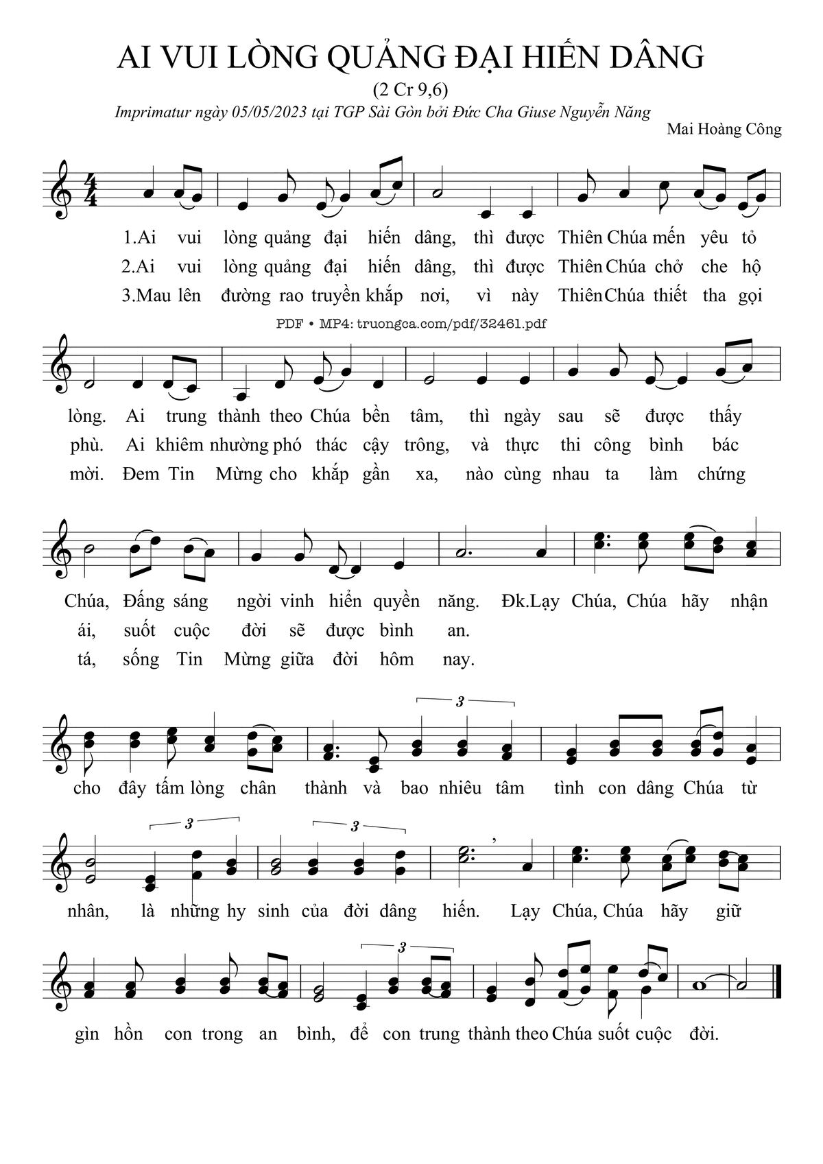 Page 1 of Sheet music PDF Ai Vui Lòng Quảng Đại Hiến Dâng - Mai Hoàng Công