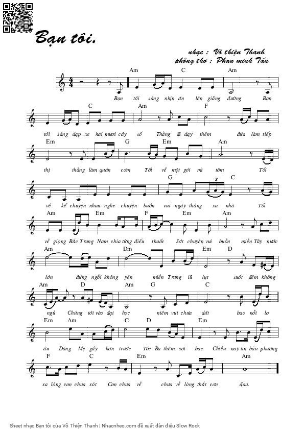 Võ Thiện Thanh Bạn tôi sáng nhịn ăn lên giảng đường [PDF] [Sheet] [Lyrics] [Mp4/Midi]