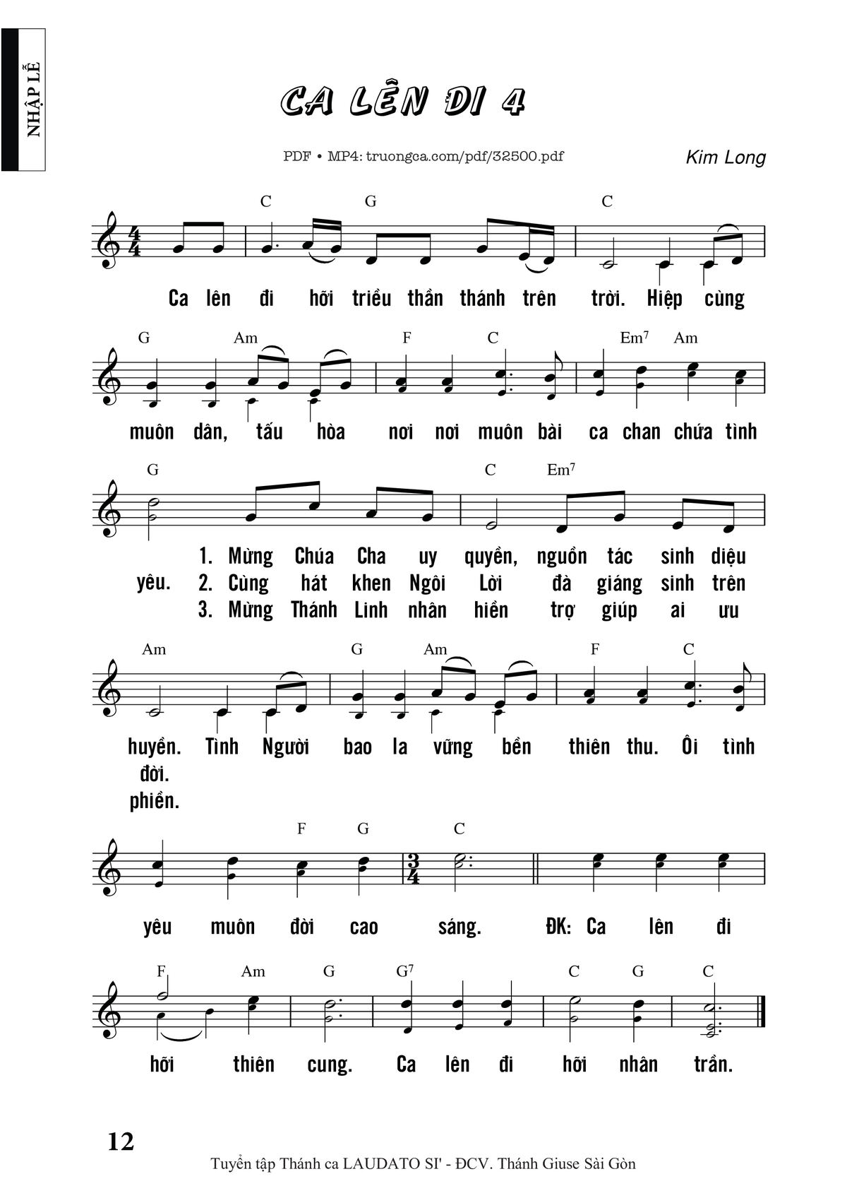 Kim Long Ca lên đi, hỡi triều thần thánh trên trời [PDF] [Sheet] [Lyrics] [Mp4/Midi]