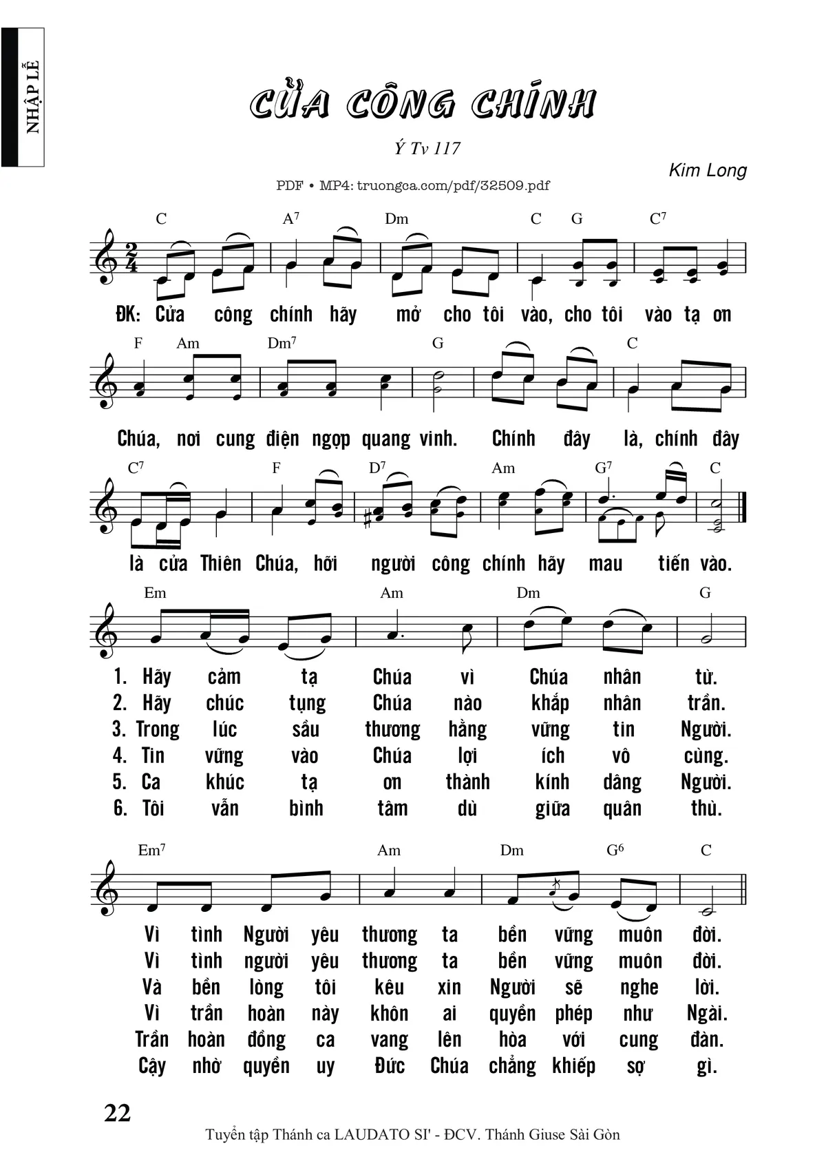 Sheet music Cửa Công Chính by Kim Long and PDF file was posted here to support you to practice singing perfectly. Sheets with notes and chords are for reference only, for non-commercial purposes only, not involved with earning money by buying and selling. Copyright is belong to song writer/author and copyright owner. Truongca.com do not own any copyrighted content. You can download the high-quality PDF files which contain staffs by PDF link above.