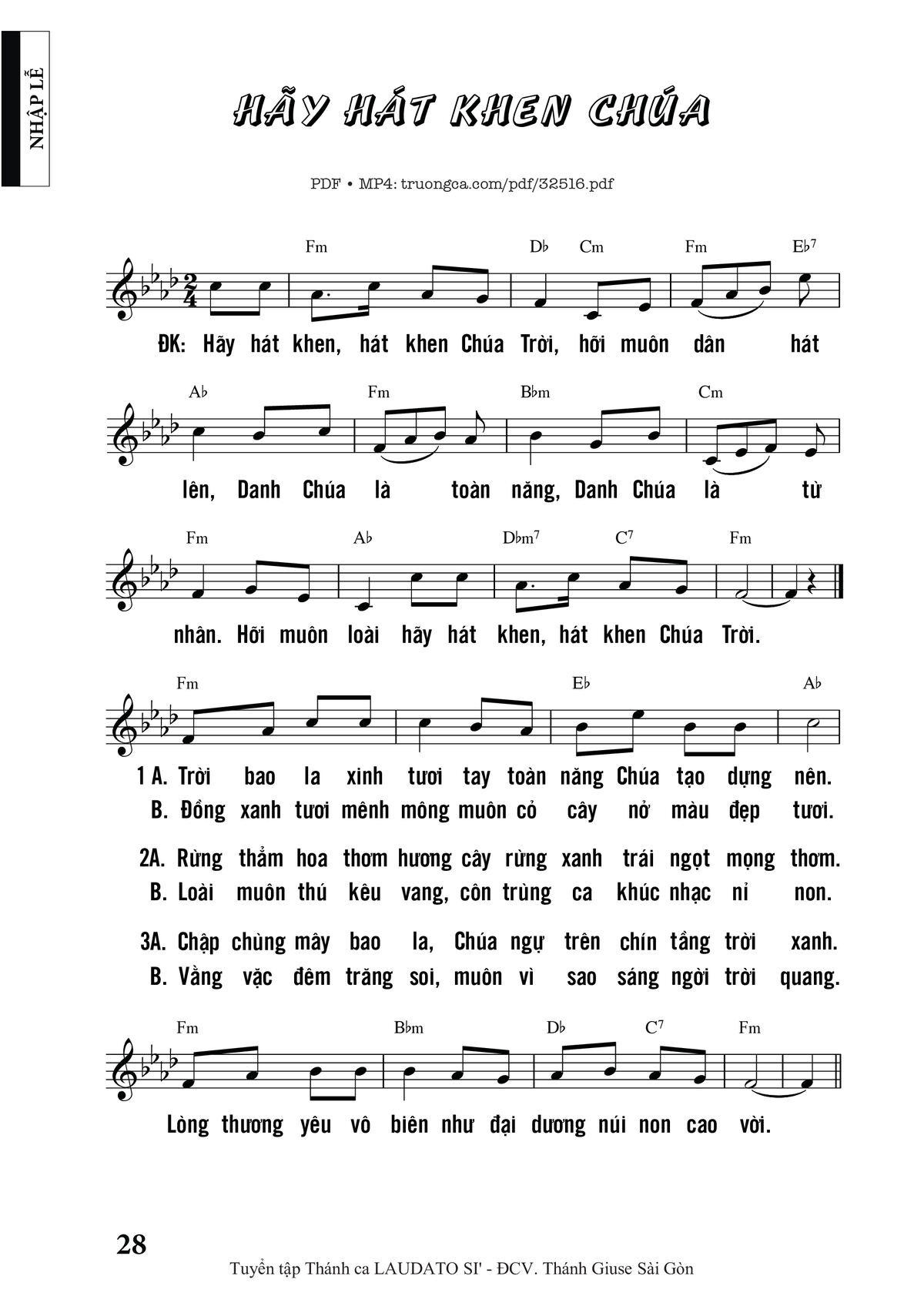 More similar sheets PDF Hãy Hát Khen Chúa: